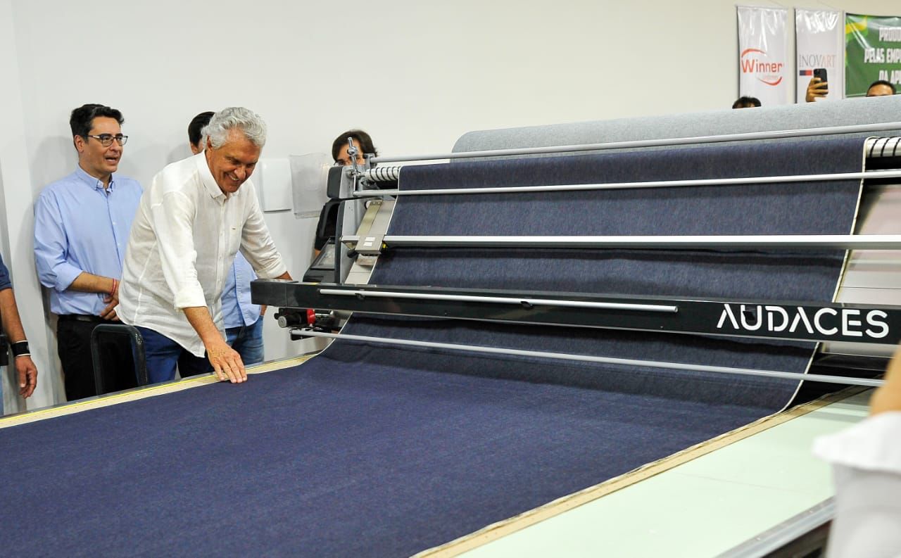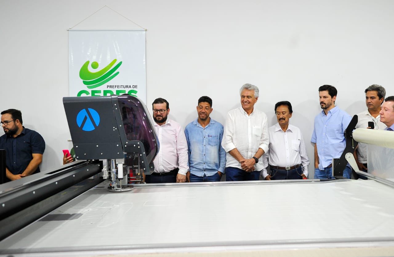 Em continuidade às políticas públicas de promoção do desenvolvimento econômico e social regional, o governador Ronaldo Caiado realizou, nesta terça-feira (11/07), a entrega de mais uma máquina de corte de tecido automática para atender o setor de confecções, em Ceres. O maquinário, avaliado atualmente em R$ 2,5 milhões, é considerado o mais moderno do mercado e deve expandir a cadeia produtiva de vestuário na região Centro-Norte do estado.