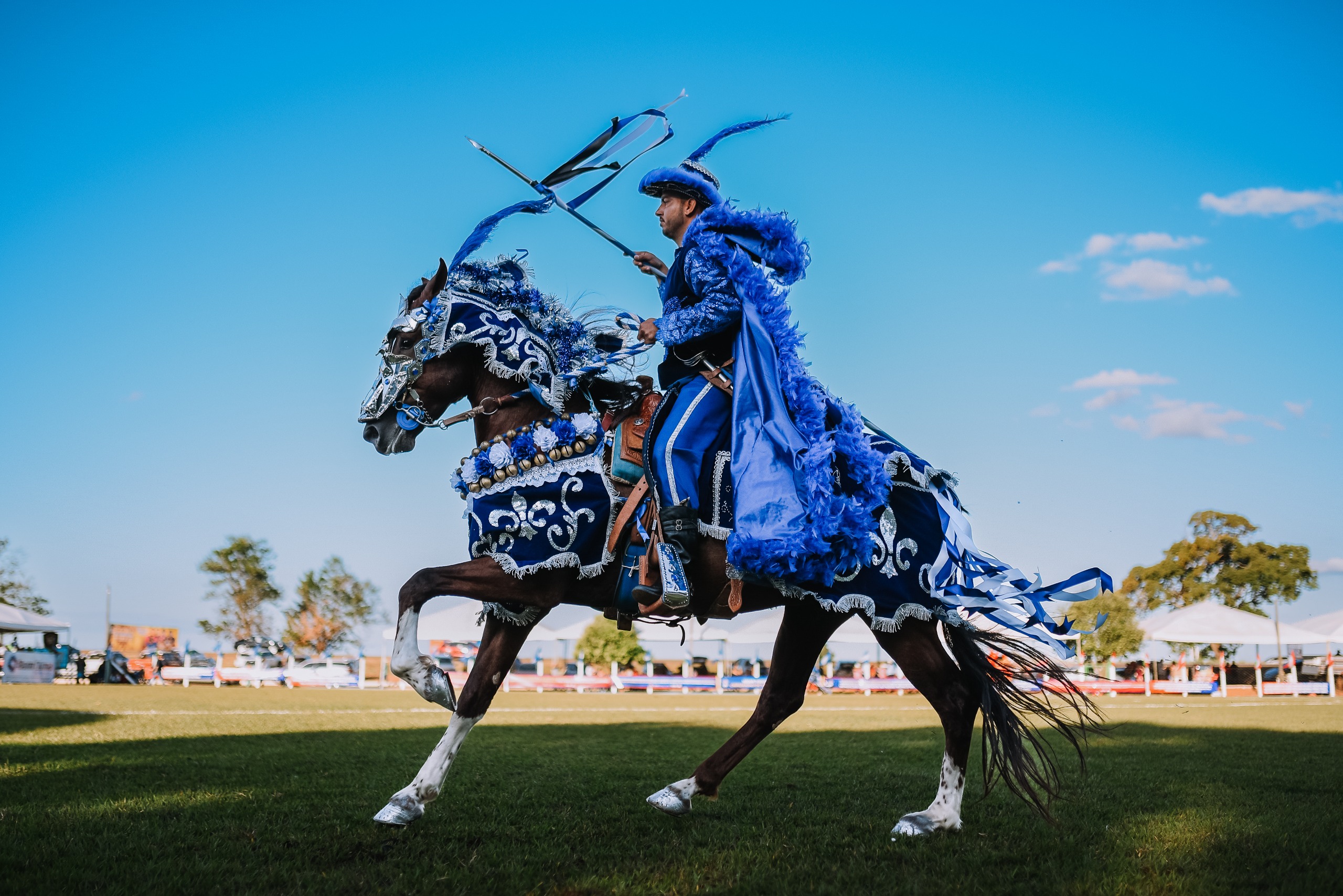 As Cavalhadas são uma representação tradicional dos torneios medievais que recriam as batalhas entre cristãos (vestidos de azul) e mouros (trajados de vermelho). A manifestação é inspirada no livro “Carlos Magno e Os Doze Pares da França”, quando o guerreiro cristão batalhou contra os sarracenos, de religião islâmica.