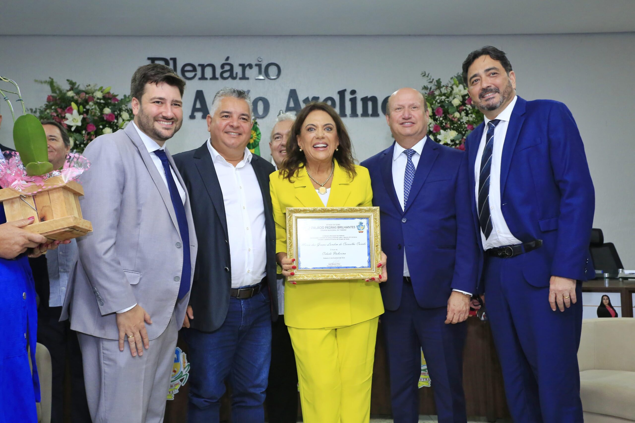 Presidente do Conselho da Associação Pró-Desenvolvimento Industrial do Estado de Goiás (Adial), Zé Garrote, que também é proprietário da São Salvador Alimentos (SSA), uma das maiores indústrias de Goiás e que tem sede em Itaberaí, também reconheceu o trabalho social da primeira-dama. “Fico muito feliz quando essa Casa, por unanimidade, entrega esse título de cidadã a Gracinha. Não é um título à toa, é para quem fez”, frisou. A solenidade teve a presença de secretários de Estado, deputados estaduais, federais e autoridades locais.