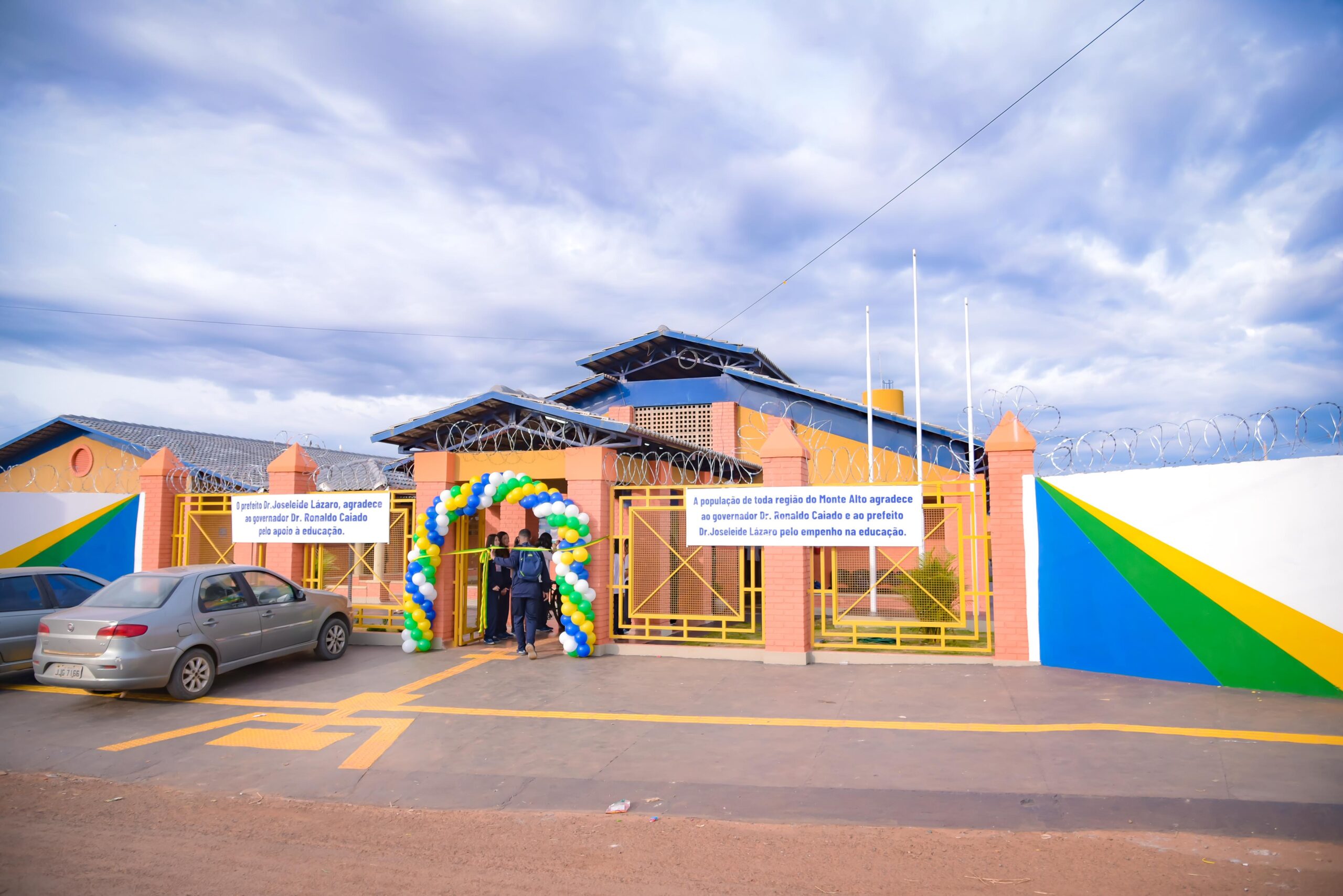 Governador Ronaldo Caiado é recebido com festa na inauguração do colégio de tempo integral em Padre Bernardo. Antes e depois: obra abandonada trazia insegurança para a população, novo prédio vai receber 454 estudantes. Fotos: Rômullo Carvalho e Lucas Diener
