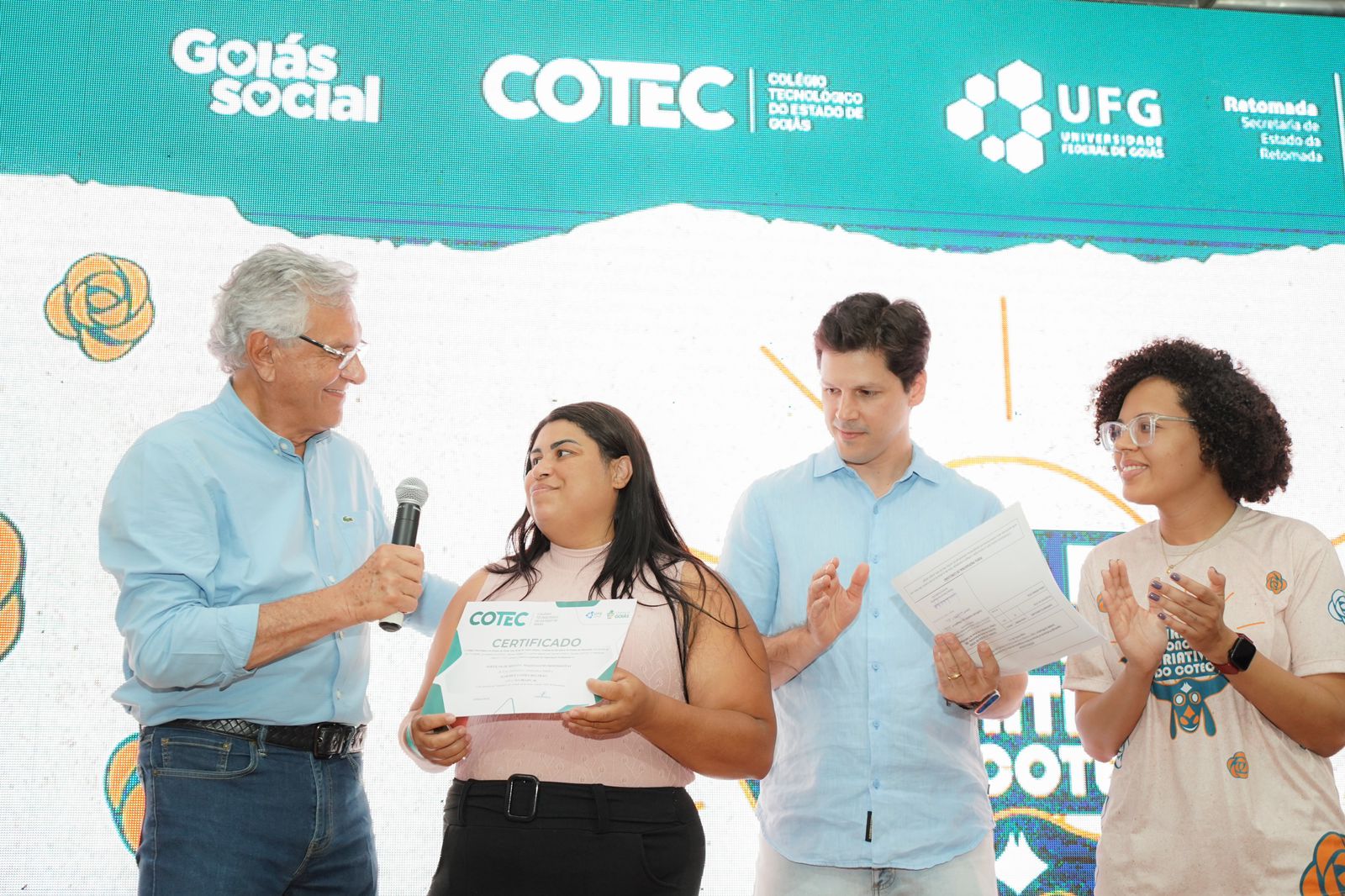Para fomentar o empreendedorismo, o governador fez a entrega de 86 cartões do Crédito Social e Bolsa Qualificação, benefícios do programa Goiás Social, por meio da Secretaria da Retomada. Criada em 2021, a ferramenta incentiva a empreender com técnicas aprendidas em cursos de capacitação dos Colégios Tecnológicos (Cotecs). O repasse, de até R$ 5 mil, é feito para alunos que concluíram o curso e estão com perfil ativo no CadÚnico do governo federal.