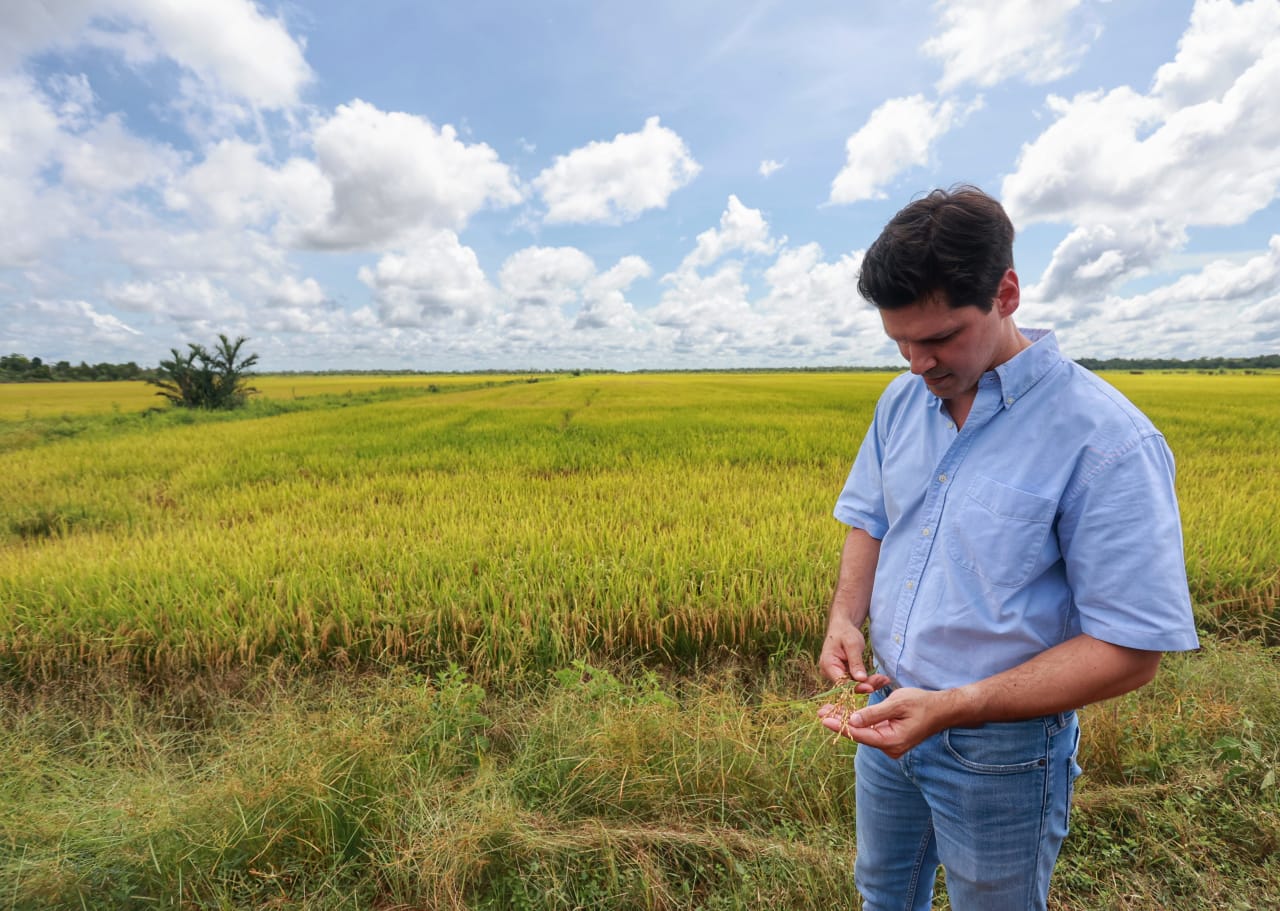 Na sequência, Daniel Vilela inspecionou lavouras de arroz acompanhado por técnicos, produtores e lideranças políticas. A colheita da safra de verão no distrito de Luiz Alves começou neste mês de março e a previsão é que sejam colhidas 300 mil sacas. Em maio, terá início o plantio da chamada “safra de inverno”. Toda a produção é direcionada ao mercado interno, o que proporciona menor dependência de arroz de outros estados brasileiros e, por tabela, redução de preços.