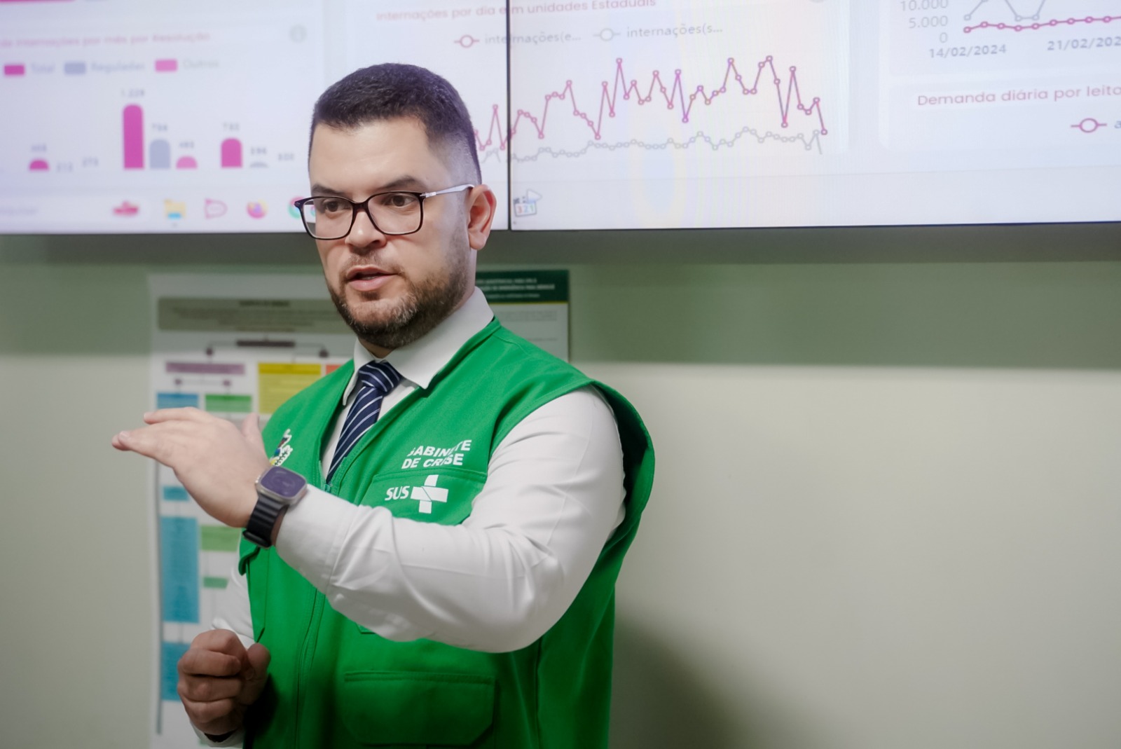 Luciano de Moura explica que a rede hospitalar está preparada para receber os pacientes graves, mas ressalta a necessidade das pessoas com sintomas característicos de dengue se hidratarem em casa e procurarem atendimento o mais rápido possível nas unidades básicas de saúde.