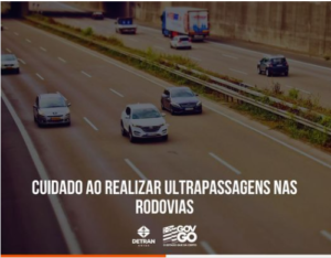 Antes de realizar a ultrapassagem, lembre-se de observar e respeitar as placas indicativas presentes na via e manter distância do veículo da frente;