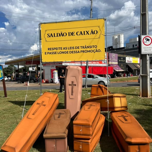 Quem passou por Goiânia se deparou com algo, no mínimo, inesperado: um Saldão de Caixões.