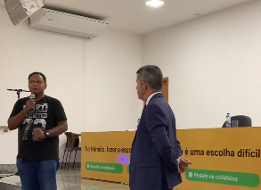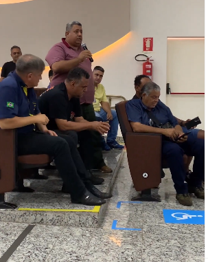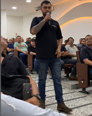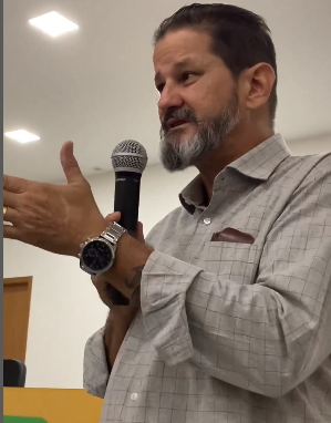 Presidente do Detran-GO Delegado Valdir discursando para a classe. Fotos : Reprodução