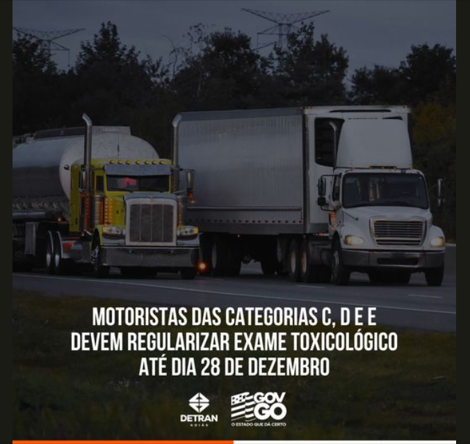 O Departamento Estadual de Trânsito de Goiás (Detran-GO) orienta que os motoristas podem consultar a data de validade do seu exame toxicológico no aplicativo Carteira Digital de Trânsito (CDT), para quem utiliza a versão digital do documento, ou verificar se a data de realização do último exame é superior a dois anos e seis meses.