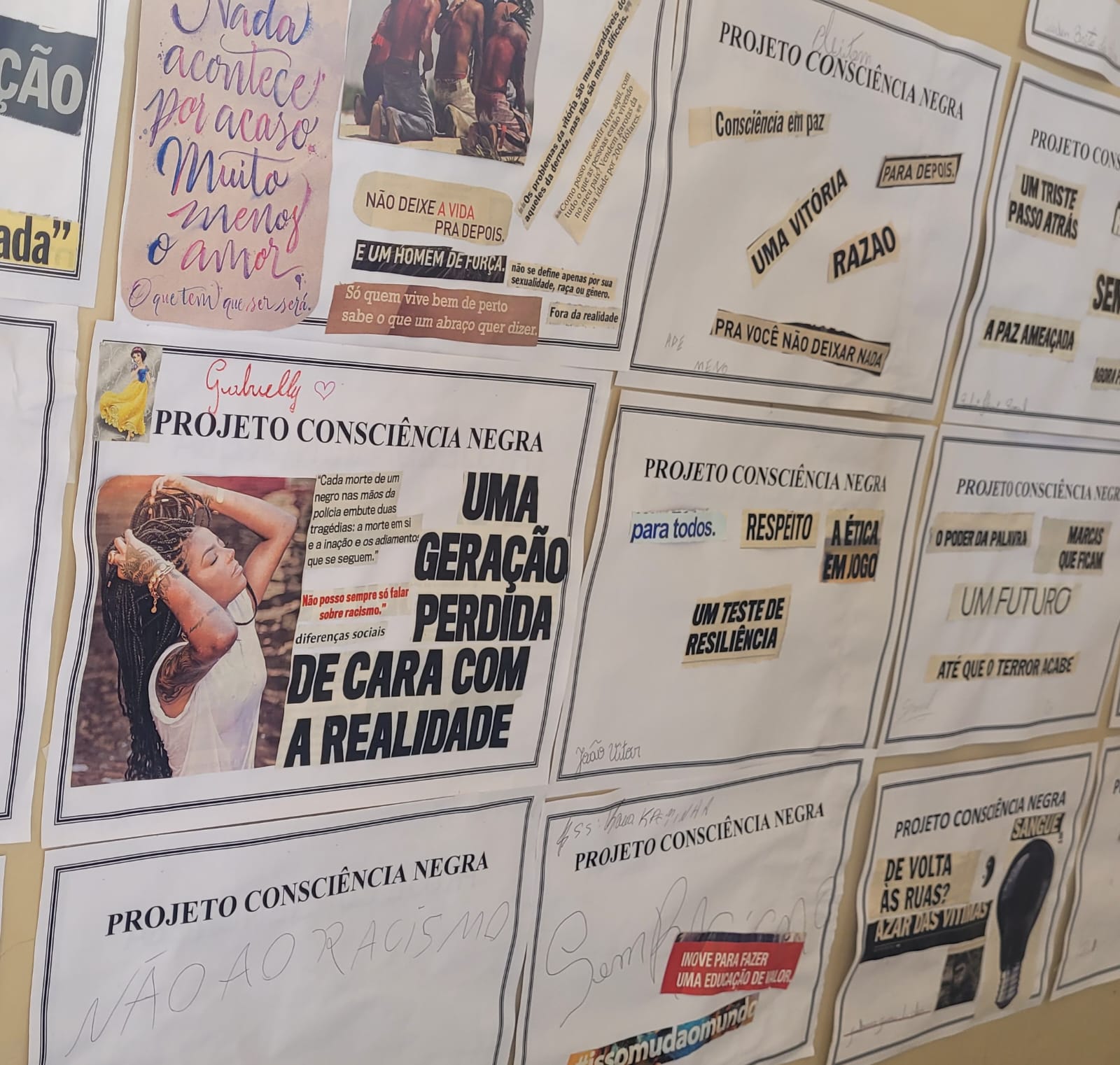 Produção de mural, música como crítica social e pinturas com personagens negros estão entre as atividades realizadas pelos jovens. Fotos: Seds