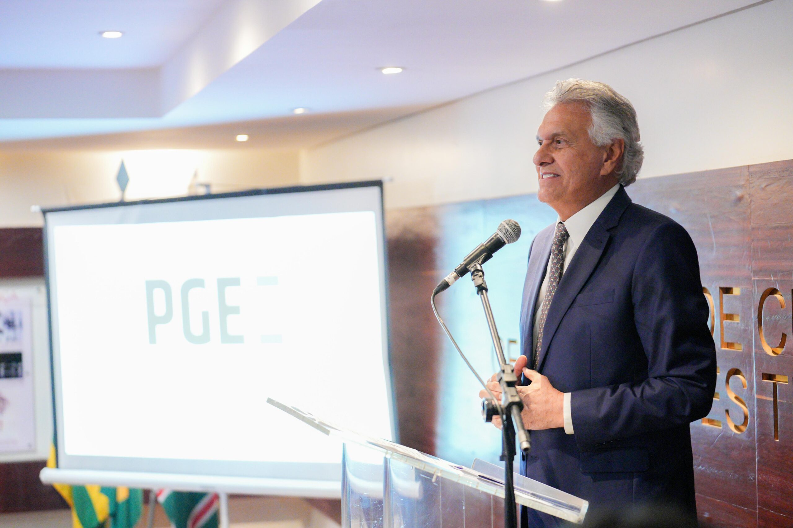 O governador Ronaldo Caiado destacou a importância do papel dos advogados públicos para a prestação célere e eficiente dos serviços oferecidos à população, durante celebração do Dia do Procurador do Estado de Goiás, no Palácio das Esmeraldas, nesta segunda-feira (20/11). A data é comemorada no dia 11 de novembro, quando foram completados 59 anos de atuação da Procuradoria-Geral do Estado de Goiás (PGE-GO). “São vocês que dão diretrizes e o apoio jurídico para que possamos tomar decisões com total embasamento e dar sustentação àquilo que um governo se propõe a fazer”, disse Caiado, que estava acompanhado da primeira-dama e coordenadora do Goiás Social, Gracinha Caiado, ao parabenizar os advogados pelo histórico da instituição e pelos resultados obtidos em 2023.
