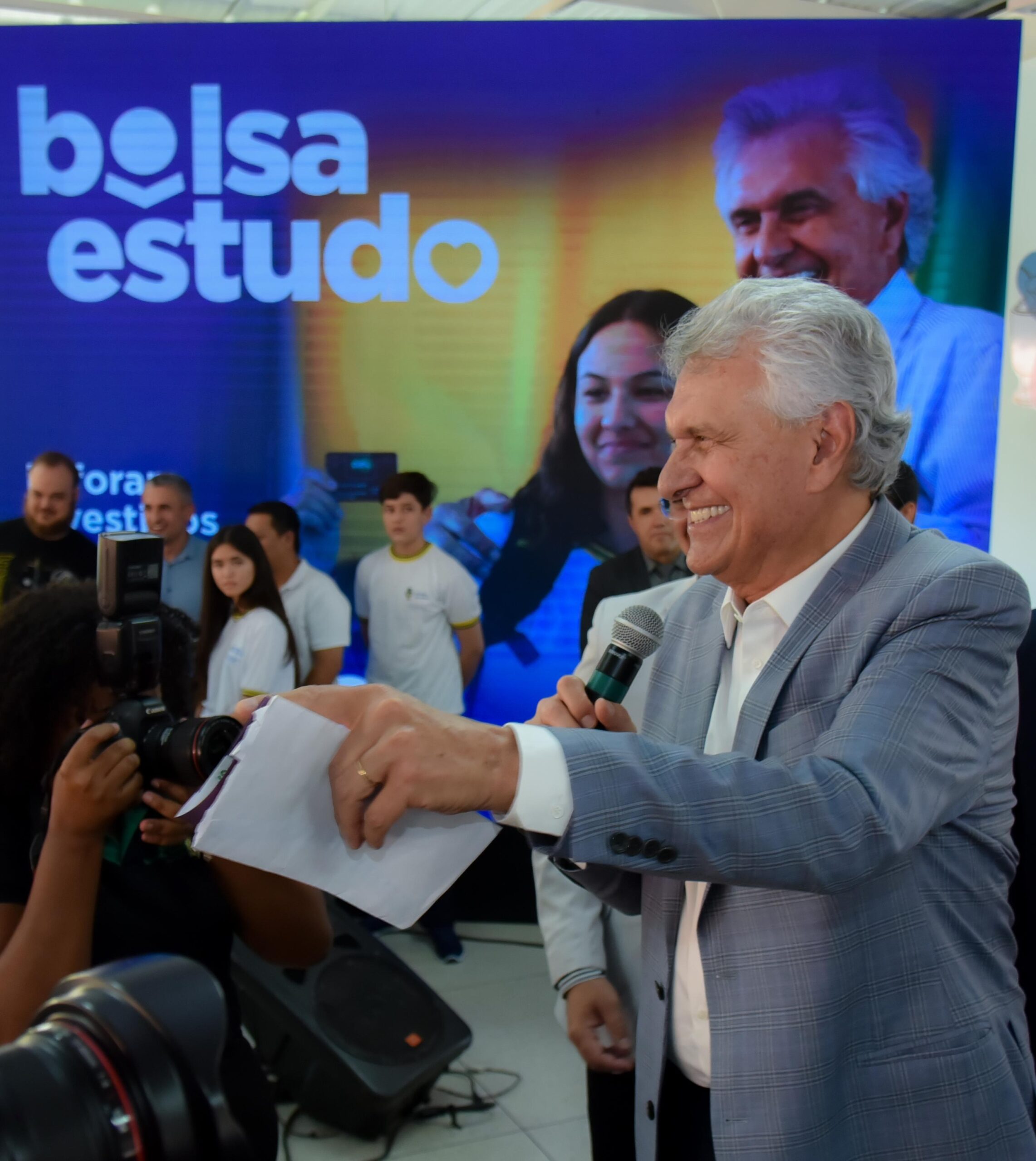 Mais de 57 mil estudantes do 9º ano do Ensino Fundamental da rede pública de Goiás já podem sacar a primeira parcela do Bolsa Estudo 2024. Para marcar a ampliação do programa, que desde 2021 já atendia o Ensino Médio, o governador Ronaldo Caiado realizou a entrega simbólica de 280 cartões, nesta quarta-feira (28/02), em cerimônia na sede da Secretaria de Estado da Educação (Seduc), em Goiânia. Somente este ano o Governo de Goiás investirá R$ 361 milhões na expansão do programa.