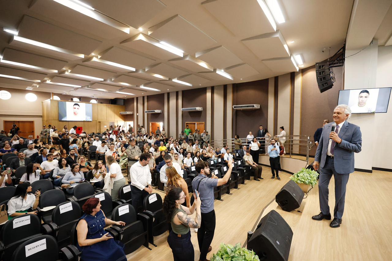 Legenda: Caiado e Daniel premiam estudantes da rede estadual que se destacaram no Enem 2025; profissionais de educação também foram premiados