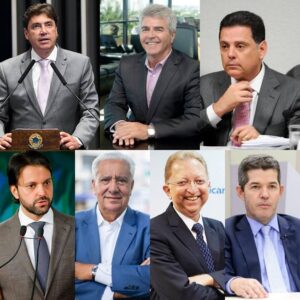 Da esq. para a direita, a partir de cima, Wilder Morais, Leonardo Rizzo, Marconi Perillo, Alexandre Baldy, Vilmar Rocha, João Campos e Delegado Waldir: principais candidatos a senador declararam bens que somam o valor total de R$ 72 milhões // Divulgação