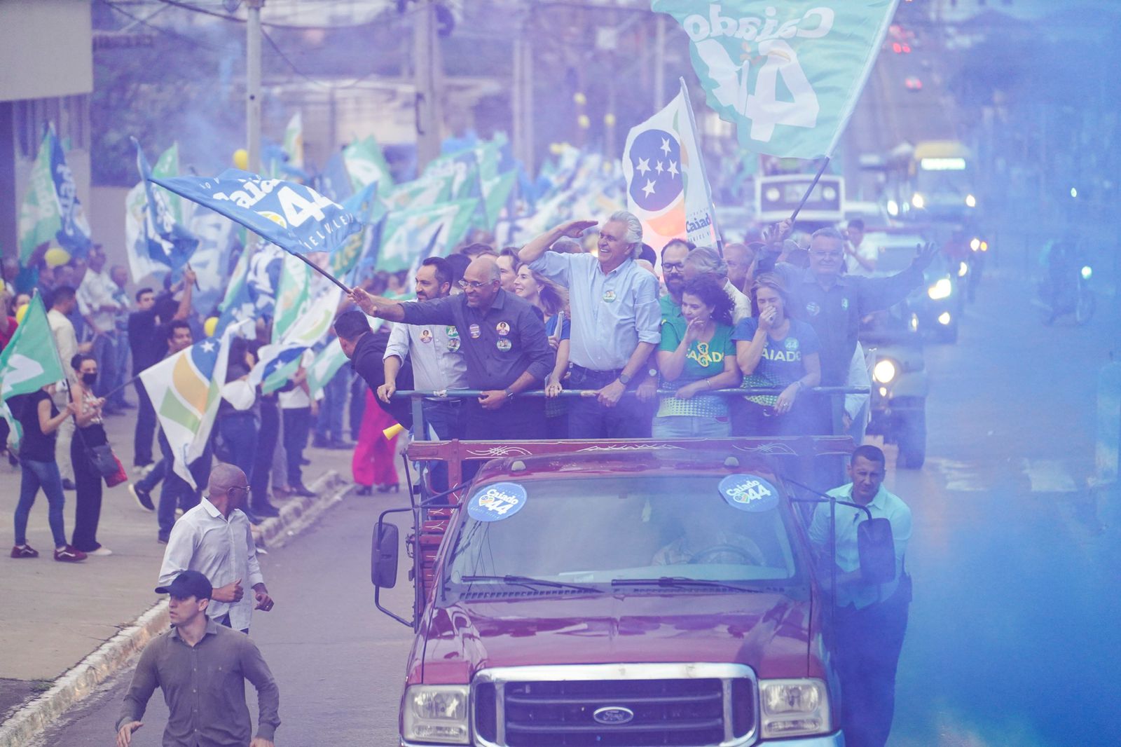 O governador também falou do alívio ao saber que o acidente com a equipe da primeira-dama, Gracinha Caiado, ocorrido nesta sexta na GO-174, não deixou feridos graves. “Agradeço a Deus por Gracinha e todos os envolvidos terem saído apenas com contusões sem gravidade”, disse Caiado. O prefeito de Goiânia, Rogério Cruz (Republicanos), também esteve no bandeiraço em apoio à reeleição de Caiado.