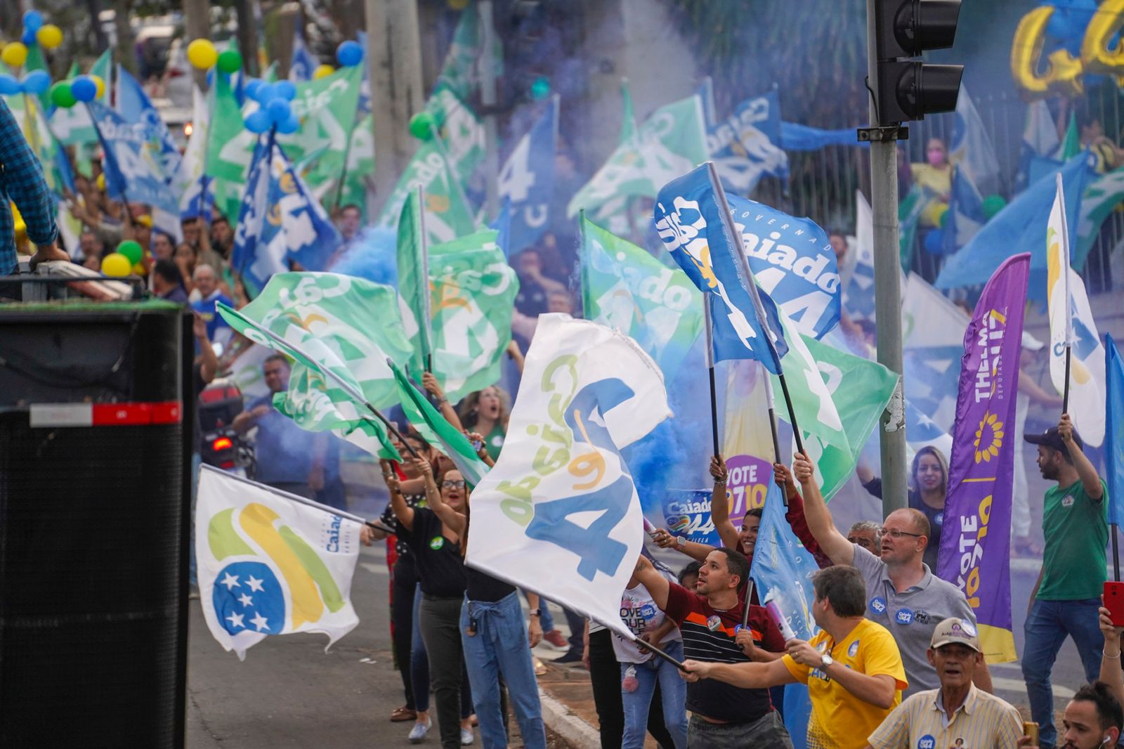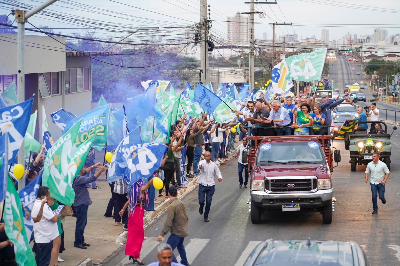 Nesta sexta-feira (30/09), o governador Ronaldo Caiado (União) falou da agenda intensa e de muito trabalho nos últimos dois dias do 1º turno da campanha pela reeleição ao Governo de Goiás. “’Gás total’ é o que caracteriza a caminhada de reta final da campanha para o Governo”, disse Caiado ao participar de um bandeiraço pela Avenida Anhanguera, em Goiânia, com apoiadores espalhados por pontos como Praça da Bíblia, Praça Botafogo, Teatro Goiânia, Lago das Rosas, Praça A e Terminal Padre Pelágio.
