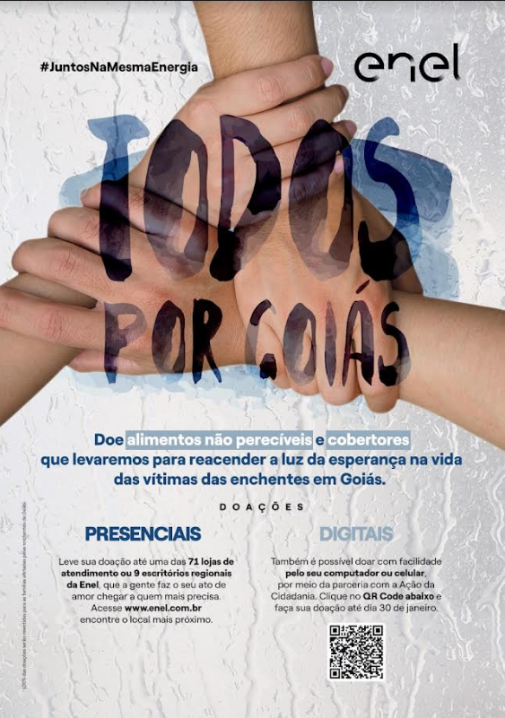 Adicionalmente, a Enel Goiás está lançando nesta semana uma campanha local de arrecadação de alimentos não perecíveis e cobertores para as famílias atingidas pelas enchentes em Goiás. Para isso, caixas de coleta serão dispostas em todas as 71 lojas de atendimento presencial, além das bases regionais da companhia no Estado. Serão aceitas doações de alimentos não perecíveis, cestas básicas ou cobertores.