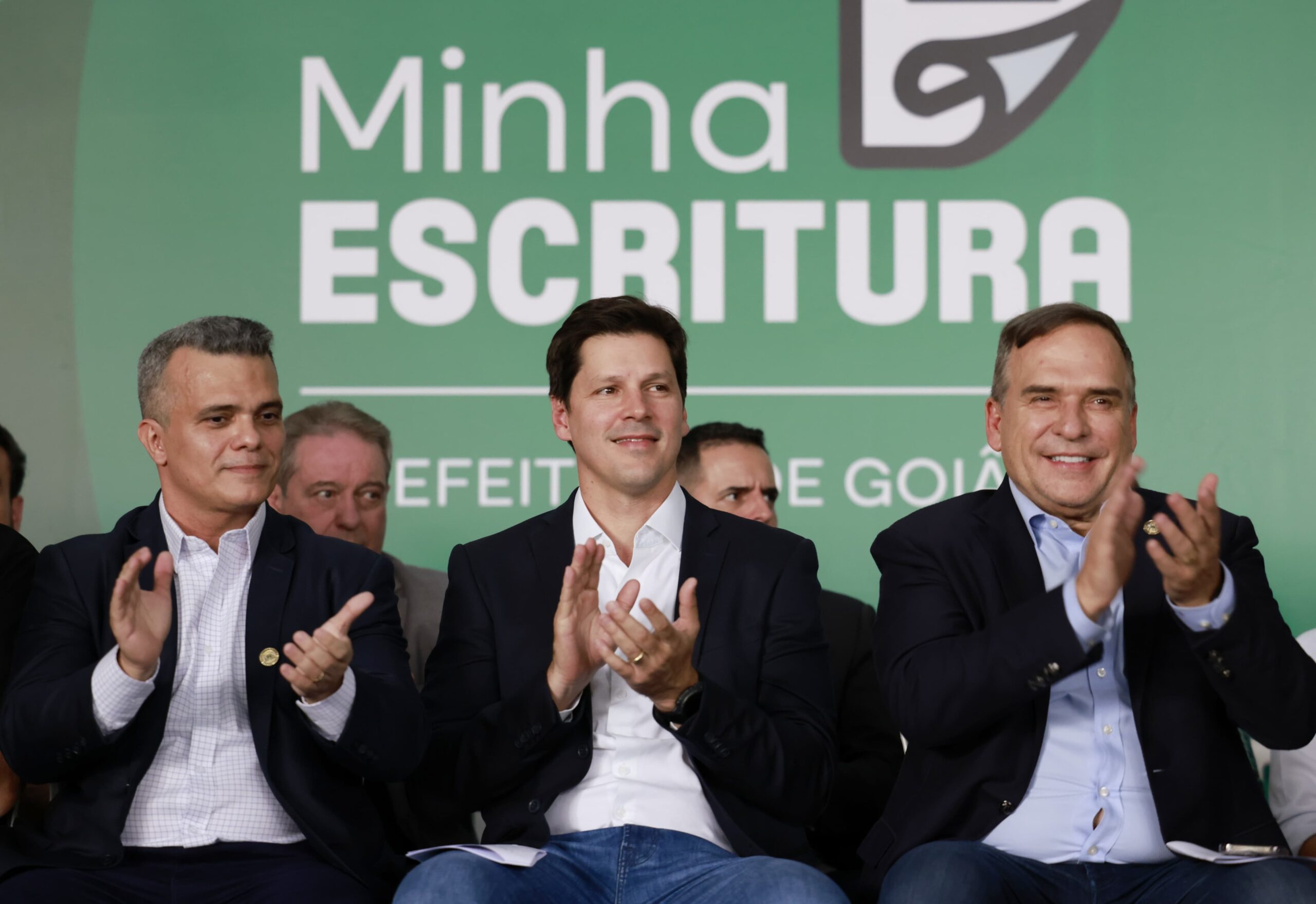 O vice-governador de Goiás, Daniel Vilela, e o prefeito de Goiânia, Sandro Mabel, entregaram, nesta quarta-feira (9/4), 700 escrituras a famílias de 32 bairros da capital. A ação é resultado de uma parceria entre o Governo de Goiás e a Prefeitura de Goiânia e garante a posse definitiva dos imóveis aos beneficiados.