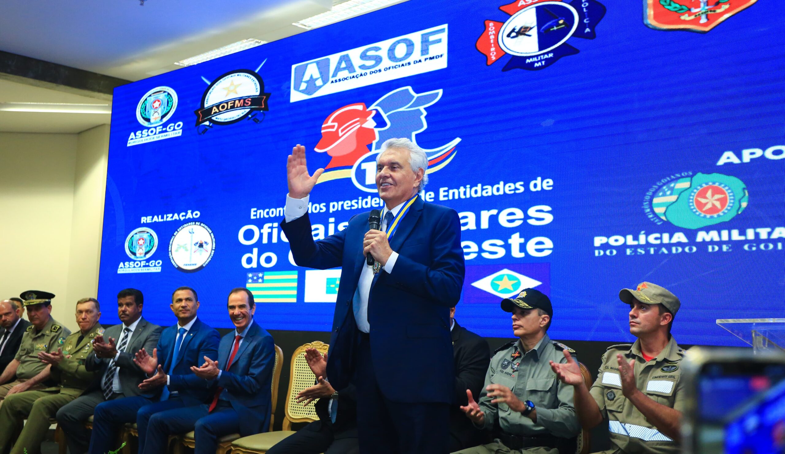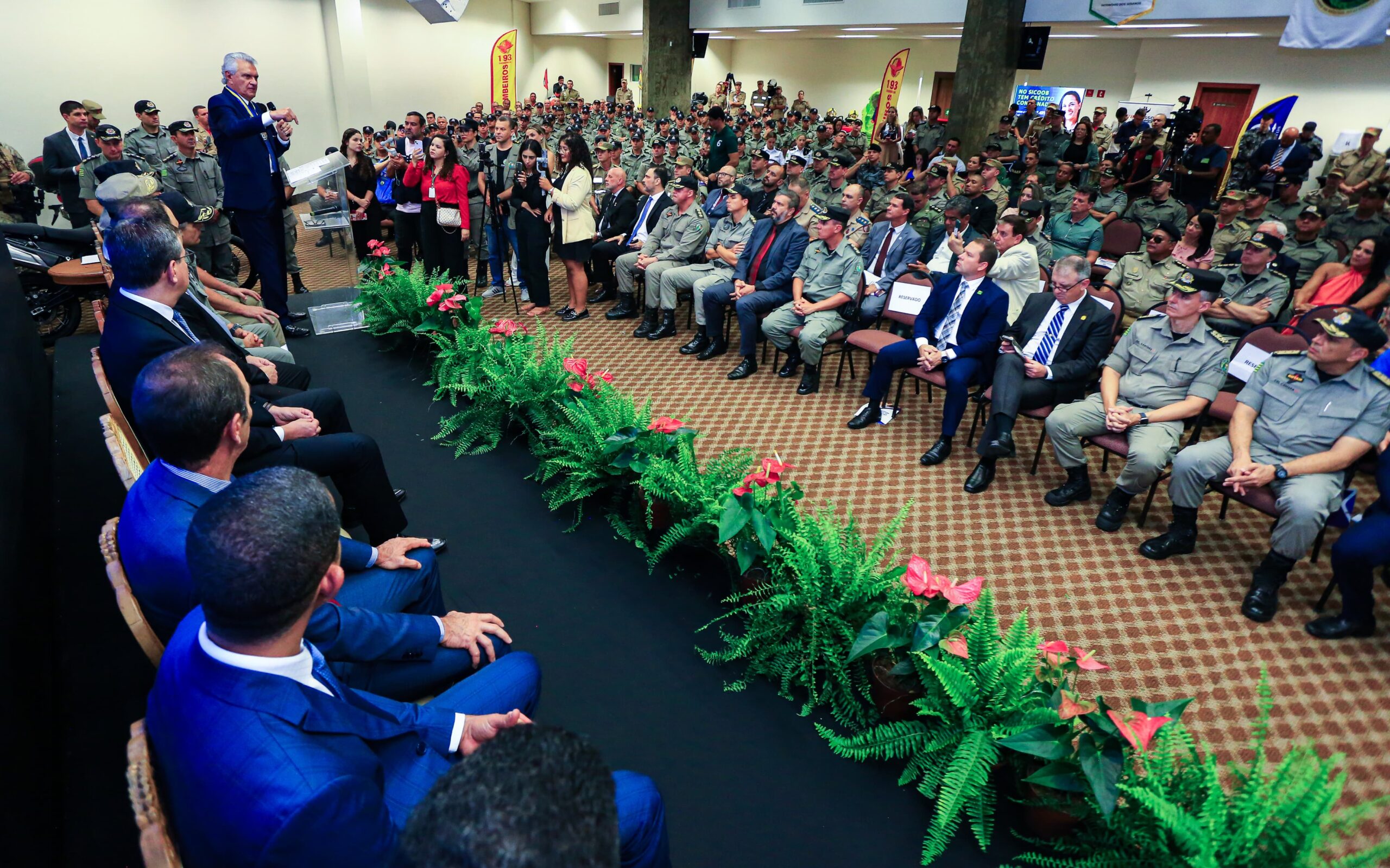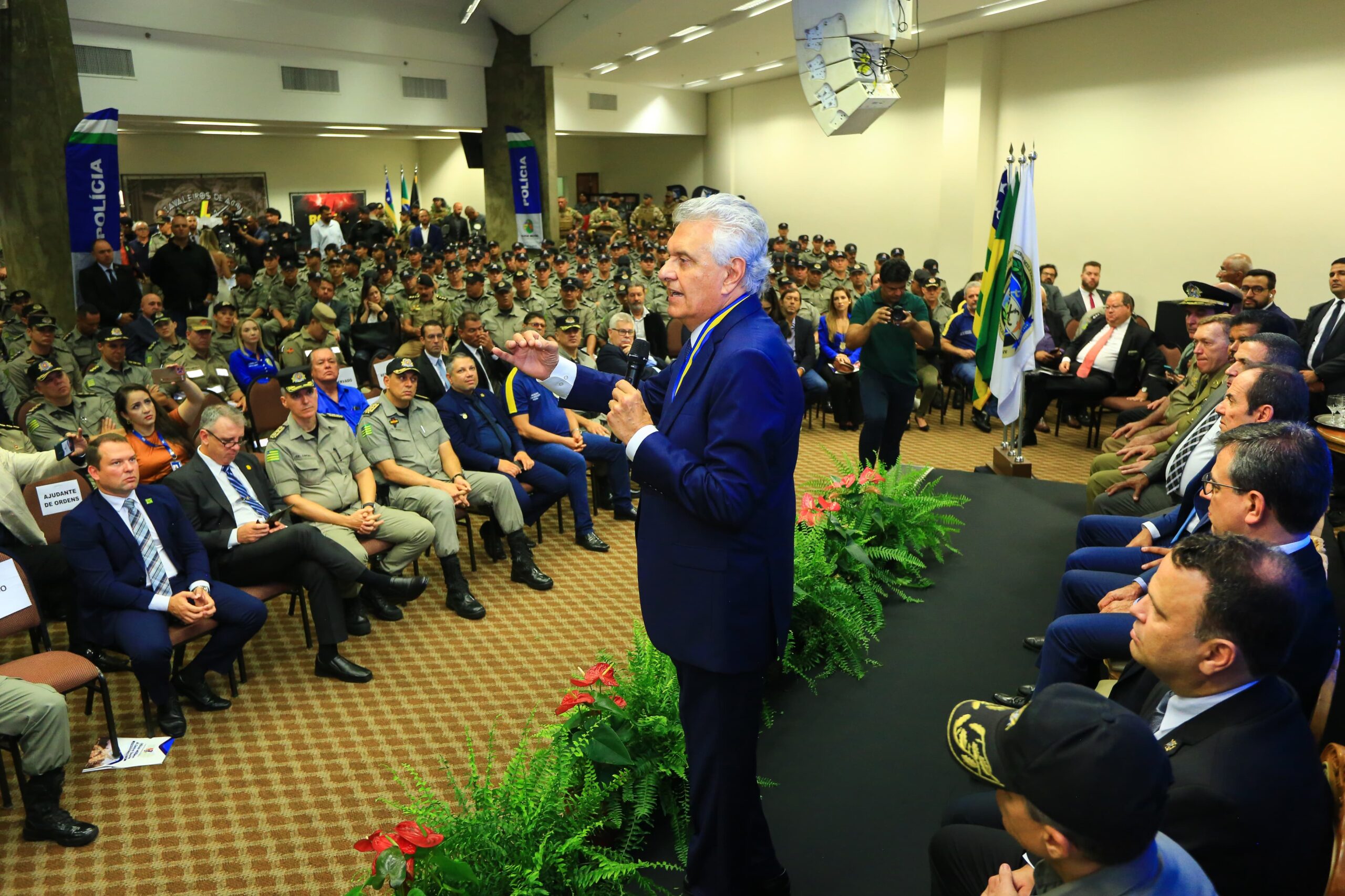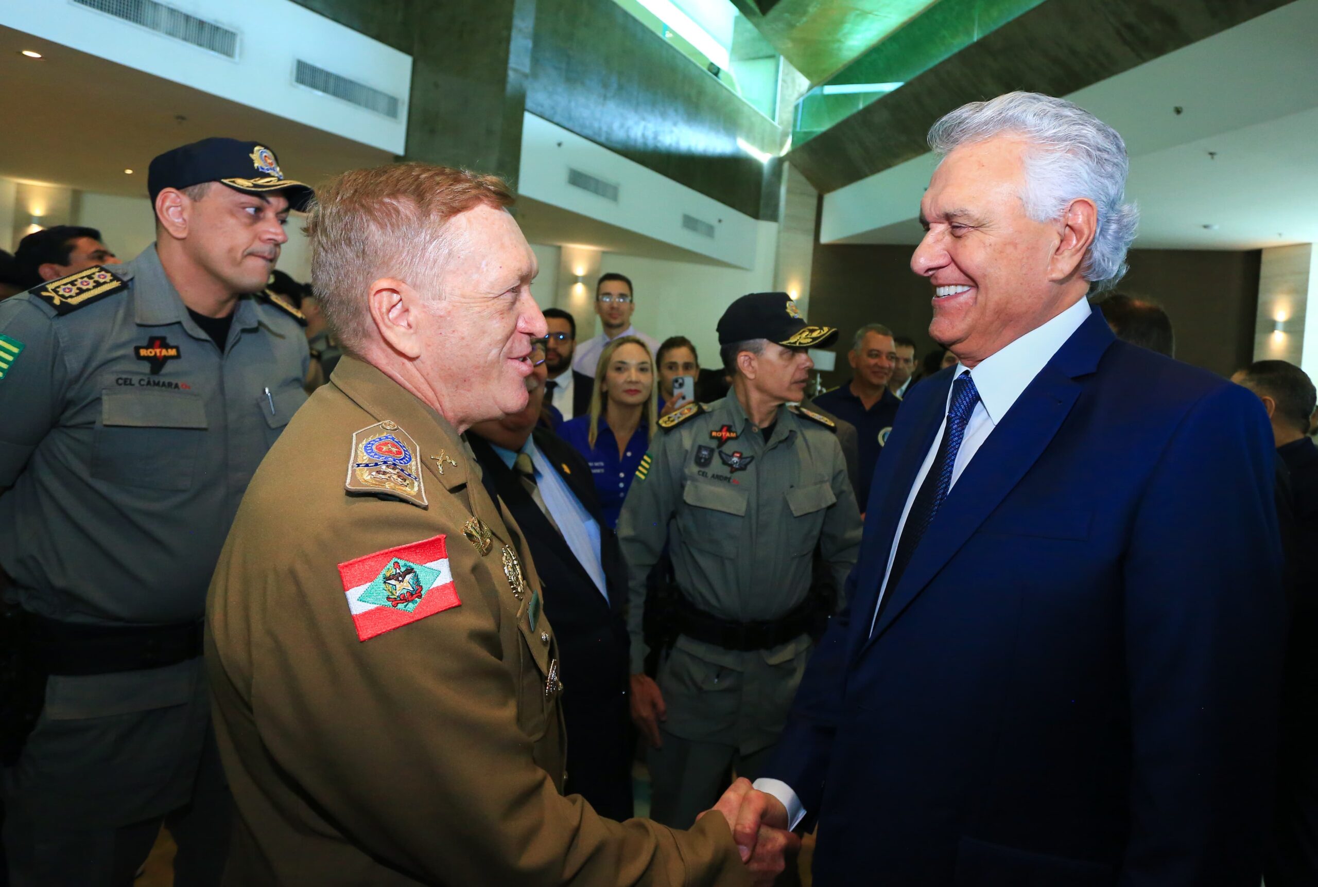 Governador Ronaldo Caiado em evento com oficiais militares e representantes da área de Segurança Pública: “Não existe Estado Democrático de Direito sem segurança pública”