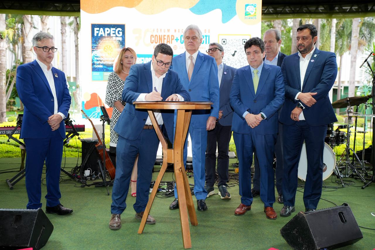 O governador Ronaldo Caiado anunciou, nesta sexta-feira (5/12), um pacote de 21 editais com investimento total de R$ 47,4 milhões para o fortalecimento da política estadual de ciência, tecnologia e inovação. A assinatura ocorreu durante encerramento do 70º Fórum Nacional do Confap & Consecti, realizado pela primeira vez em Goiânia. O evento teve a participação de presidentes das 27 Fundações Estaduais de Amparo à Pesquisa (FAPs) e secretários estaduais de Ciência, Tecnologia e Inovação de todo o país.