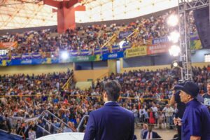 O governador Daniel Vilela participou nesta sexta-feira (3/4), em Goiânia, do Grande Culto Poder dos Milagres, realizado no Ginásio Goiânia Arena. O evento reuniu milhares de fiéis sob a condução do apóstolo Valdemiro Santiago e da bispa Franciléia. A celebração integrou a programação especial pelos 28 anos da Igreja Mundial do Poder de Deus e foi marcada por momentos de oração, testemunhos e manifestações de fé. A concentração em Goiânia foi uma das principais do país, reunindo participantes de diversas regiões.