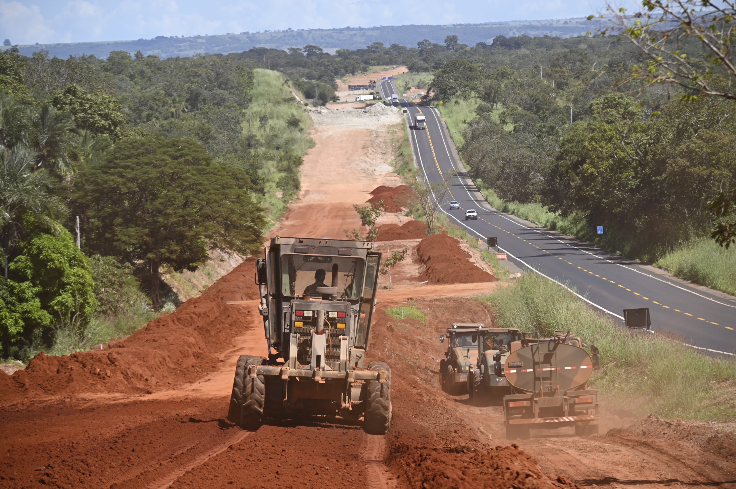 Frentes de serviço trabalham na supressão vegetal e terraplenagem e já se programam para o início da restauração de trechos críticos entre Caldas Novas e Morrinhos