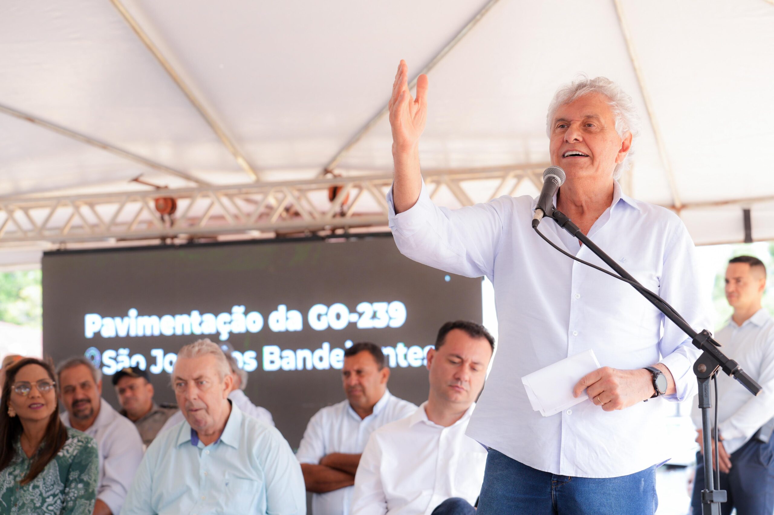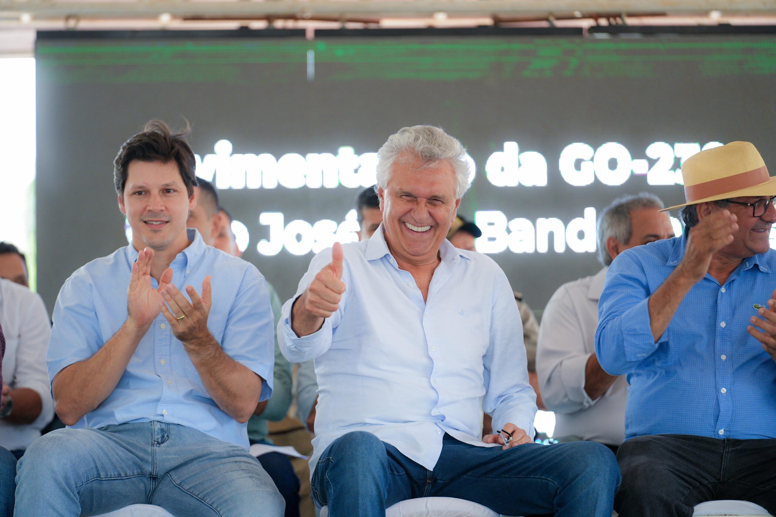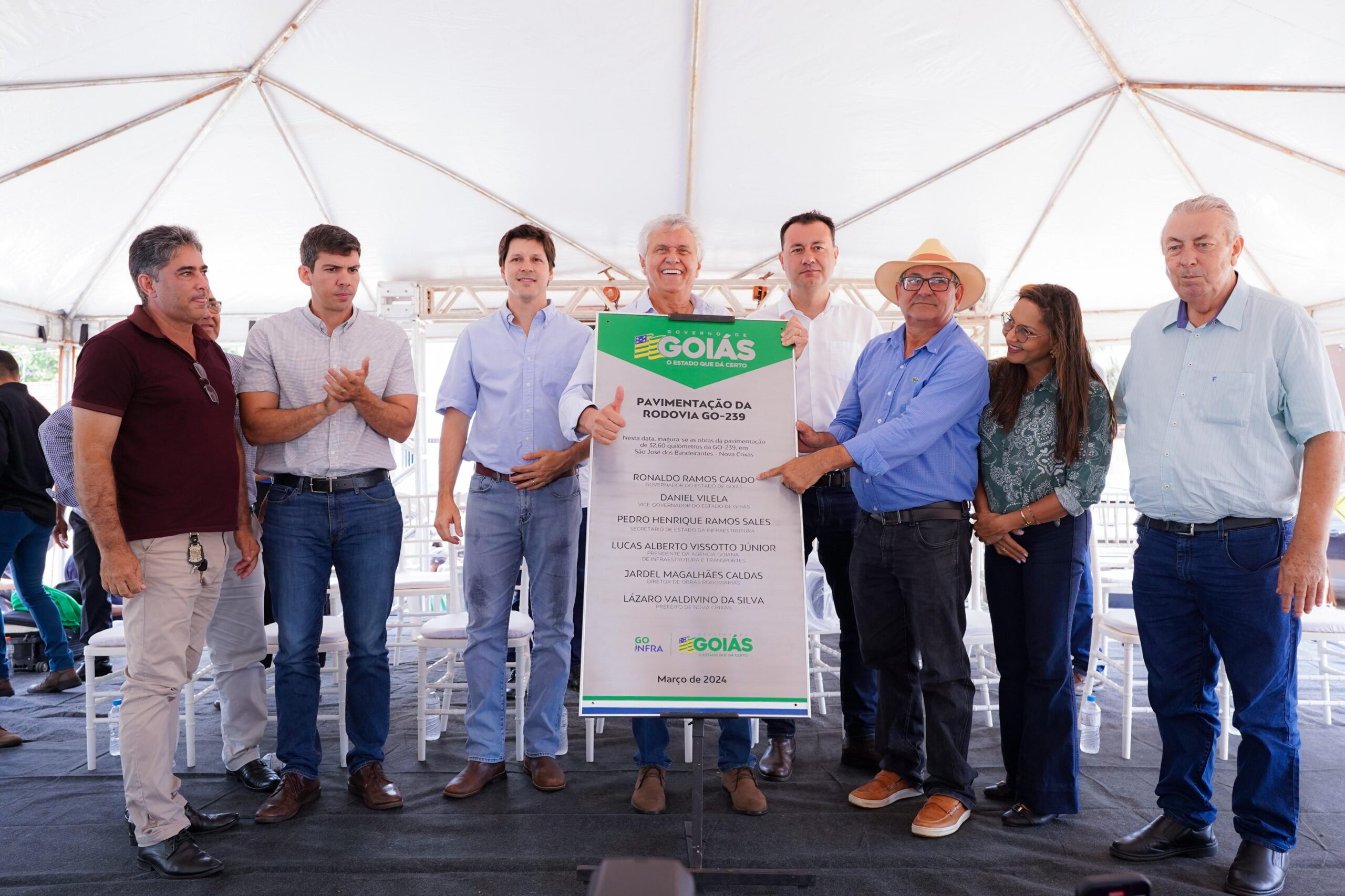 Inauguração do asfalto na GO-239 com a presença de Caiado, secretários e demais autoridades: segurança e atração de investimentos para a região