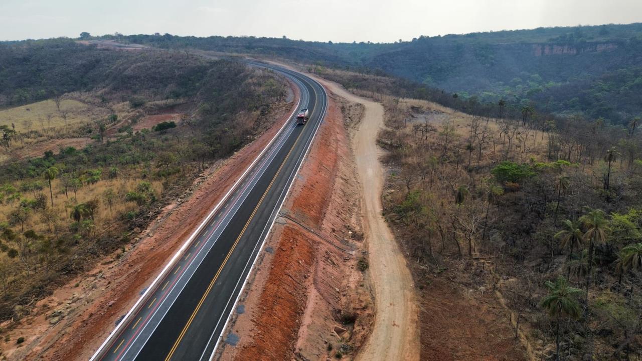 Governo de Goiás deve entregar ainda este mês a conclusão da obra na rodovia que liga o município de Guarani de Goiás e ao Parque Estadual de Terra Ronca. Fotos: Goinfra