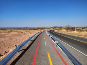 As obras da GO-108 chamam atenção por duas novidades implementadas no trecho pavimentado: uma ciclovia em toda sua extensão, com 31 mil metros de guardrail (guarda-corpo) ou defensa metálica, para proteger motoristas e ciclistas de acidentes, e oito quilômetros da pista executados em blocos de concreto, tipo paver, solução mais sustentável que o asfalto tradicional, dentro da área do Parque Estadual de Terra Ronca.
