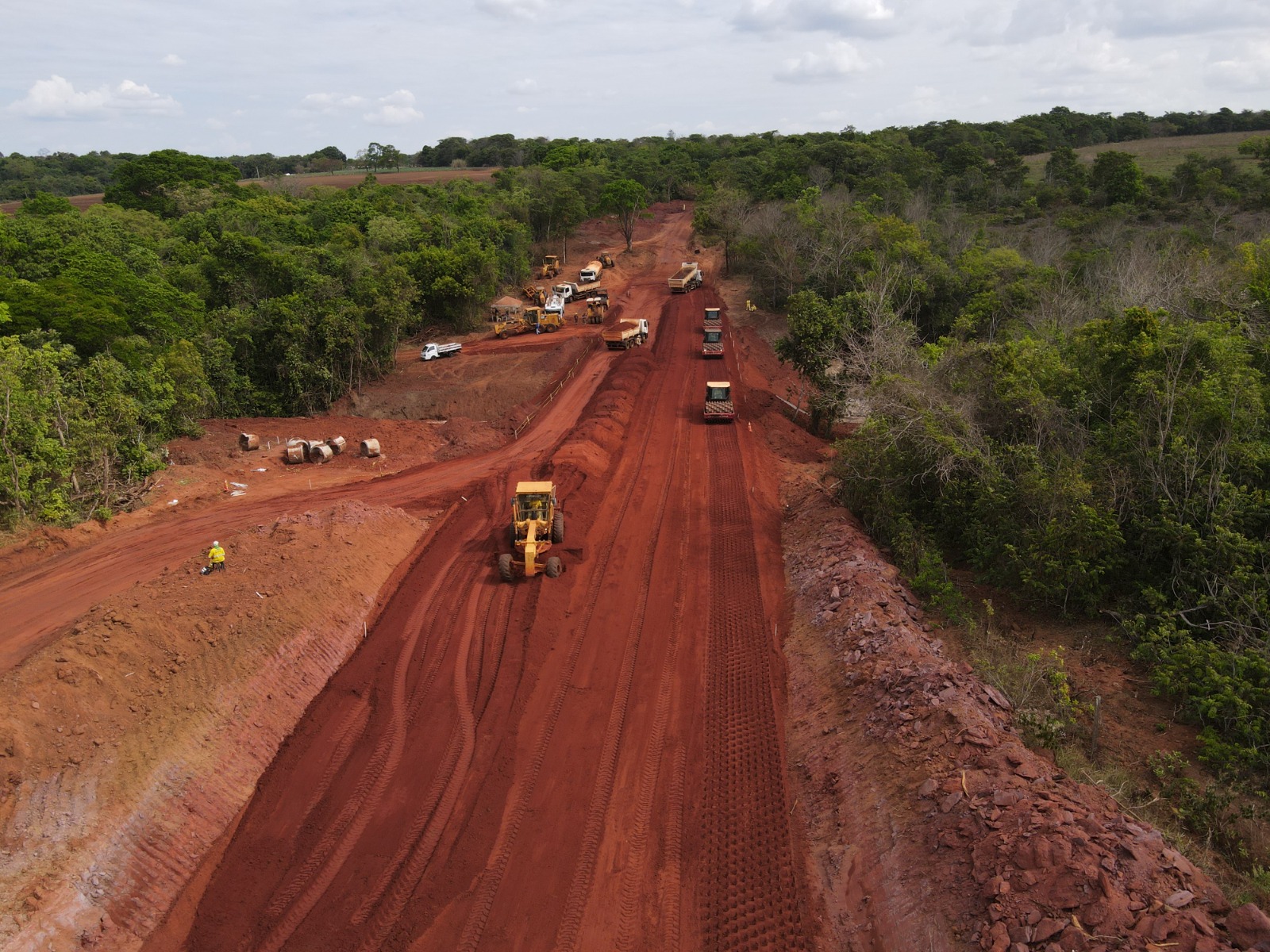 Equipes da Agência Goiana de Infraestrutura e Transportes (Goinfra) estão finalizando a terraplanagem de um trecho de 25 quilômetros da GO-180, entre a BR-364 e a GO-467, em Jataí. Paralelamente, já foi iniciada a aplicação do revestimento da pista em concreto betuminoso usinado a quente (CBUQ). Ao todo, 65% do projeto já foi executado.