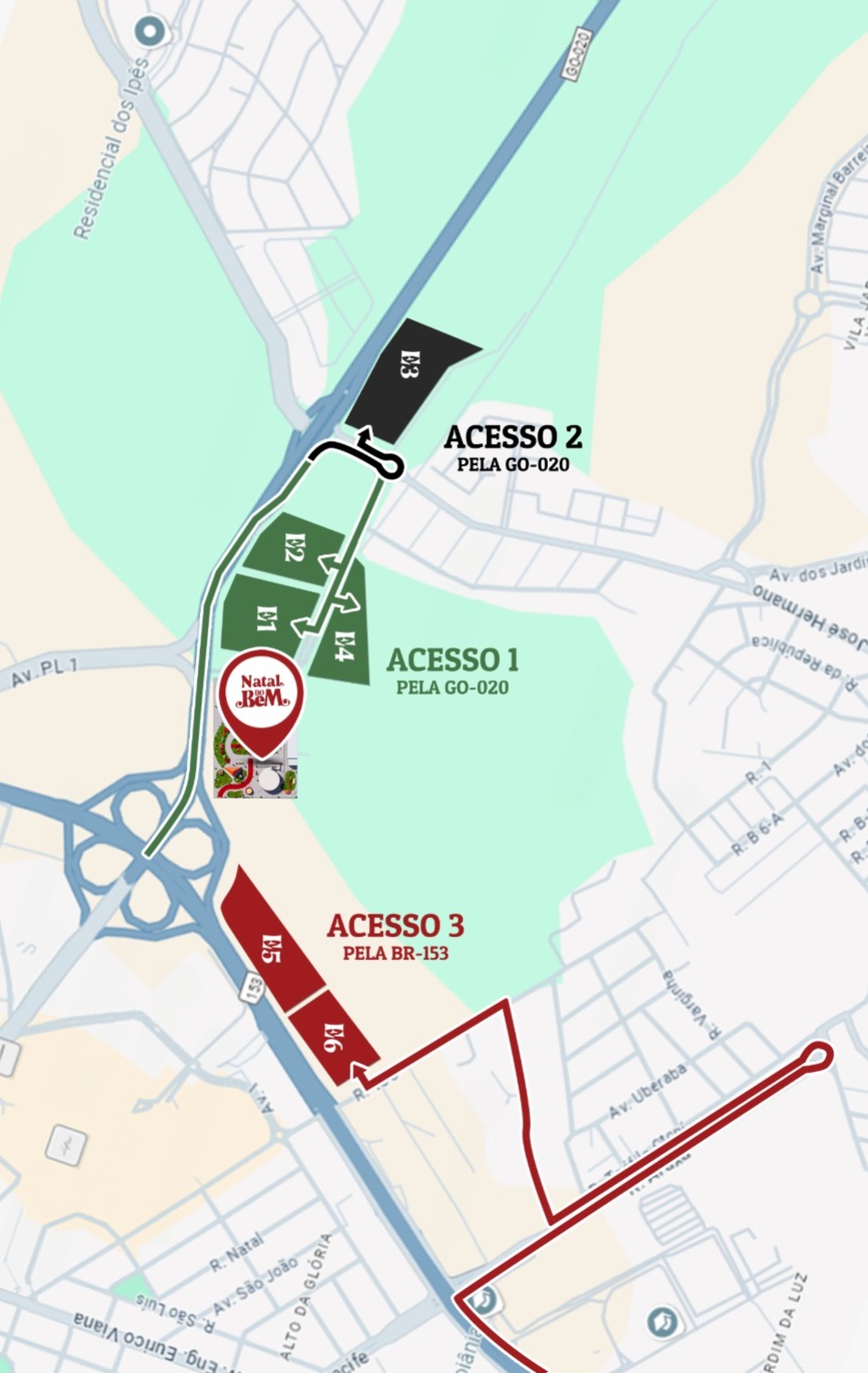Para facilitar o acesso ao Natal do Bem, os visitantes têm duas opções de trajeto: uma pela BR-153 e outra pela GO-020