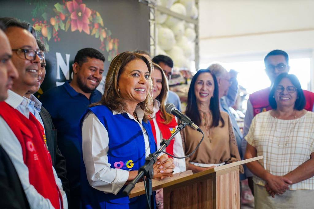 Legenda: Coordenadora do Gabinete de Políticas Sociais (GPS) e presidente de honra da Organização das Voluntárias de Goiás (OVG), primeira-dama Gracinha Caiado, no lançamento da distribuição de brinquedos da campanha Natal do Bem aos 246 municípios goianos. Fotos: Júnior Guimarães