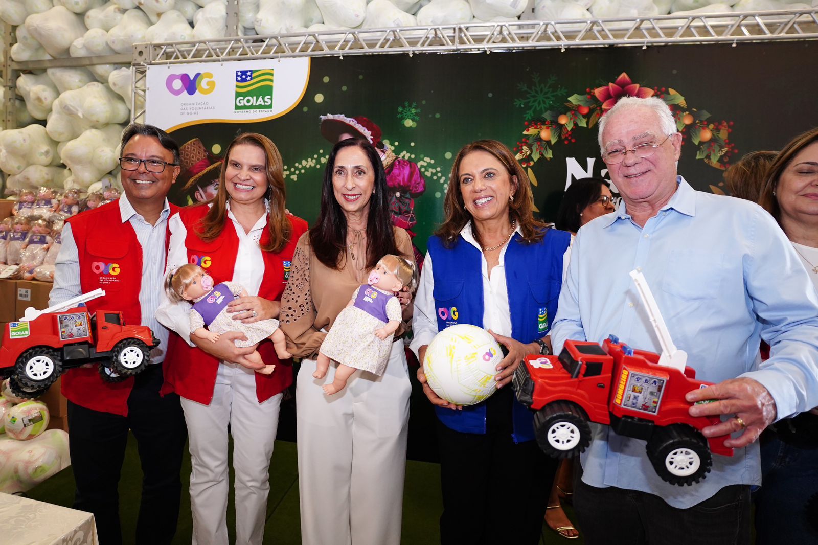A coordenadora do Gabinete de Políticas Sociais (GPS) e presidente de honra da Organização das Voluntárias de Goiás (OVG), primeira-dama Gracinha Caiado, iniciou nesta quarta-feira (9/11), em Goiânia, a distribuição de 525 mil brinquedos da campanha Natal do Bem. Eles serão destinados aos 246 municípios de Goiás, de acordo com a população em situação de vulnerabilidade de cada cidade.