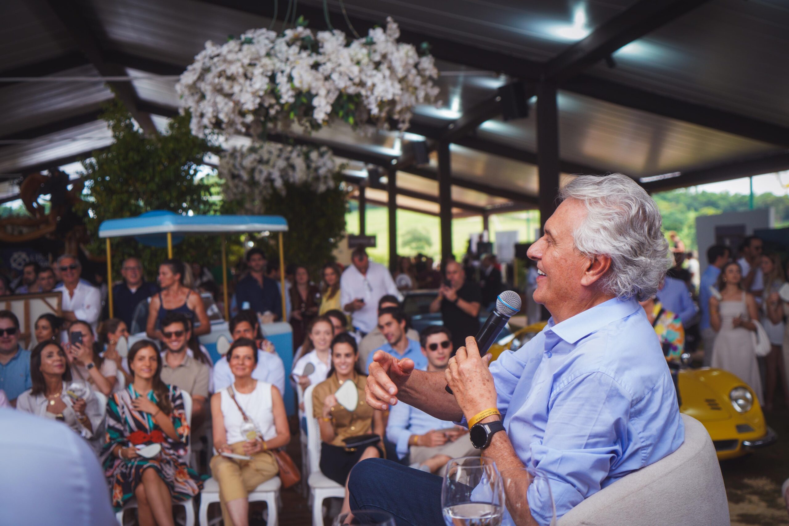 Governador Ronaldo Caiado durante painel no Festival Internacional do Cavalo Puro Sangue Lusitano da Coudelaria Rocas do Vouga em Itu, no interior de São Paulo