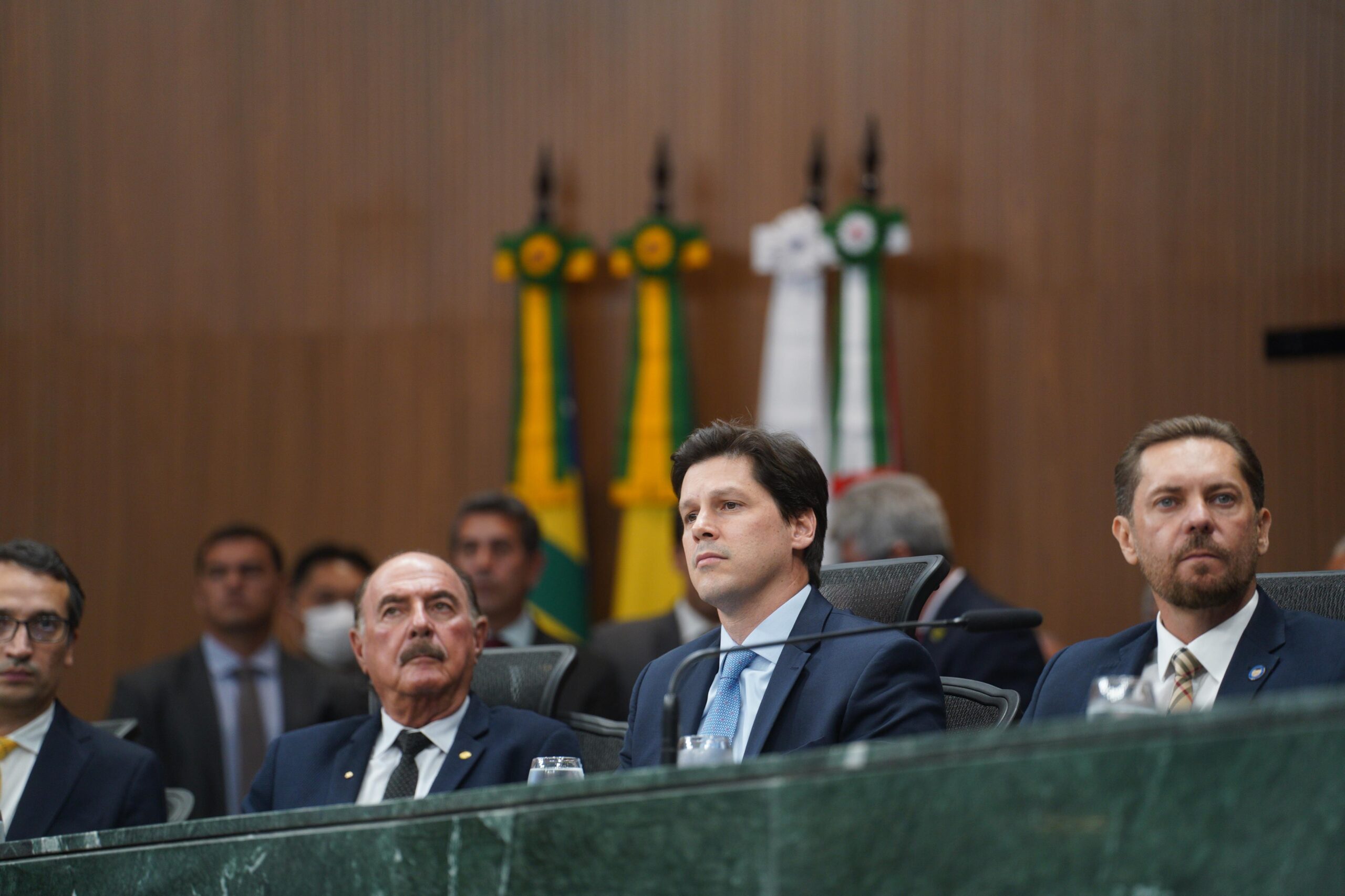 O governador em exercício Daniel Vilela participou, nesta segunda-feira (17/2), da solenidade de instalação da Terceira Sessão Legislativa Ordinária da 20ª Legislatura da Assembleia Legislativa de Goiás (Alego). No plenário Iris Rezende, Vilela destacou a importância do diálogo entre os poderes e falou do avanço de ações estruturantes no estado. “Vamos consolidar este ano o maior pacote de obras já visto em Goiás. Temos 44 grandes obras que já estão em andamento ou que iniciaremos em breve. Estamos resolvendo gargalos históricos”, citou.
