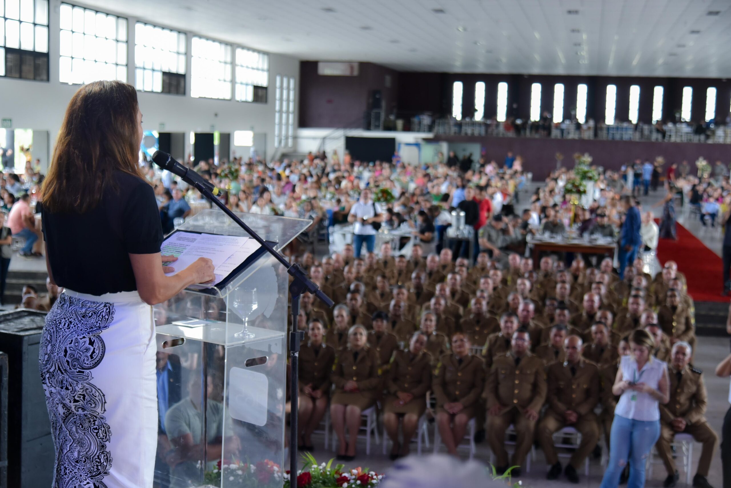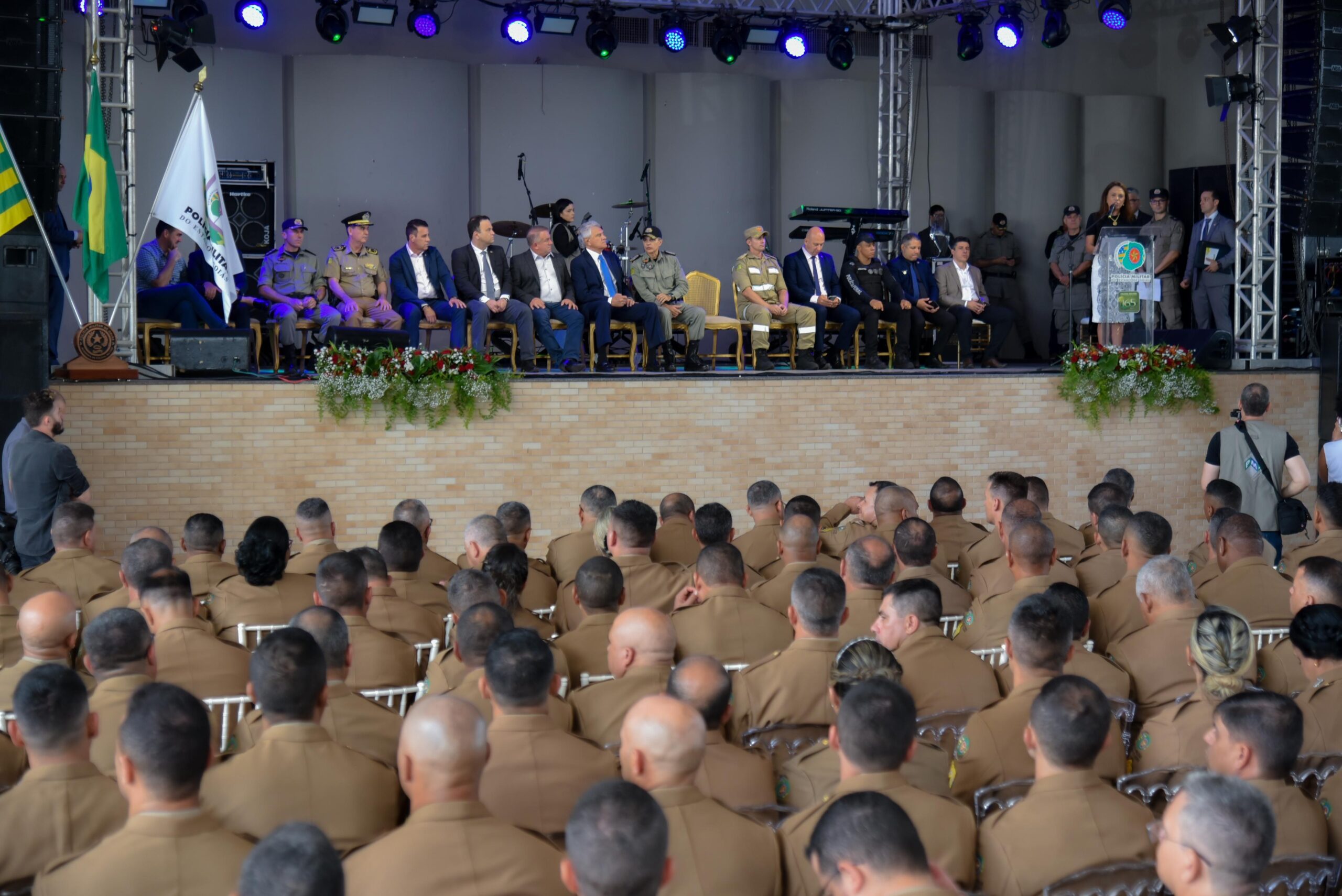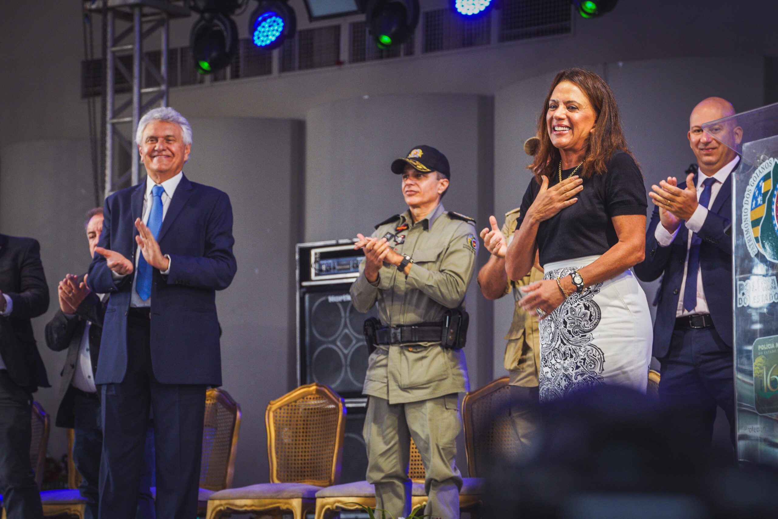Madrinha da turma, a primeira-dama e coordenadora do Goiás Social, Gracinha Caiado, declarou “admiração incondicional” à corporação e mencionou avanços do Estado na segurança pública, como a queda histórica dos principais índices de criminalidade. “Vocês são referência no Brasil. A qualidade de vida do povo goiano mudou. Em um país cada vez mais mergulhado na violência, e tomado pelas facções criminosas, nós, goianos, podemos viver em paz e correr atrás dos nossos sonhos com segurança”, afirmou.