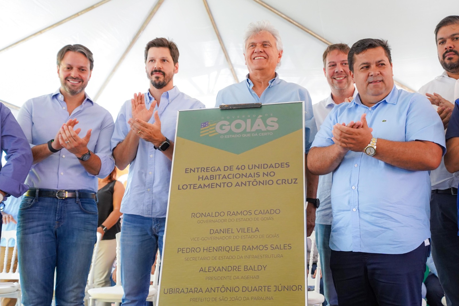 O governador Ronaldo Caiado entregou na manhã desta terça-feira (12/09), 40 casas a custo zero no município de São João da Paraúna, a 150 quilômetros de Goiânia. Os investimentos provenientes do Fundo de Proteção Social de Goiás (Protege) totalizam R$ 4,5 milhões. Durante a entrega, Caiado destacou a parceria da gestão com os prefeitos municipais.
