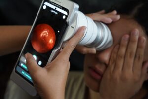 Legenda da Foto: Em parceria com o Cerof-UFG, programa Olhar para Todos realiza avaliações oftalmológicas detalhadas nas escolas, identificando desde dificuldades de visão até alterações mais complexas na retina