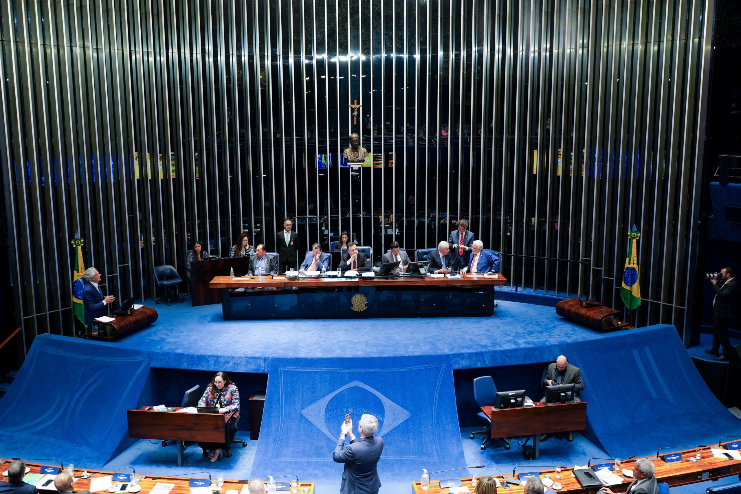 Fruto do requerimento nº 693, de 2023, do senador Jorge Kajuru, a sessão temática de debates foi conduzida pelo presidente do Senado, Rodrigo Pacheco. “Estamos abrindo nossas portas para um diálogo franco”, afirmou, ao conclamar que todas as lideranças priorizem a discussão “ampla e profunda”. “Todos queremos um sistema tributário mais transparente. Vamos esgotar a possibilidade de discussão que nos cabe nessa Casa”, afirmou o presidente.