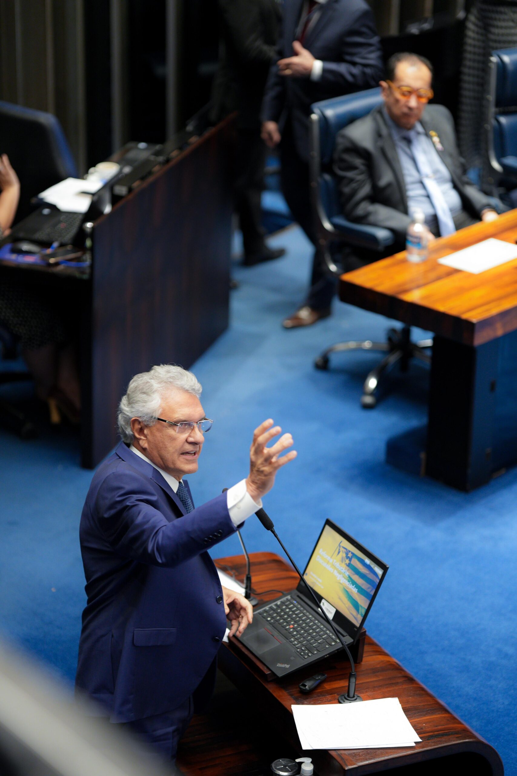 No Senado federal, governador Ronaldo Caiado defende mudanças no texto da Reforma Tributária. Fotos: Sidney Lins Jr.