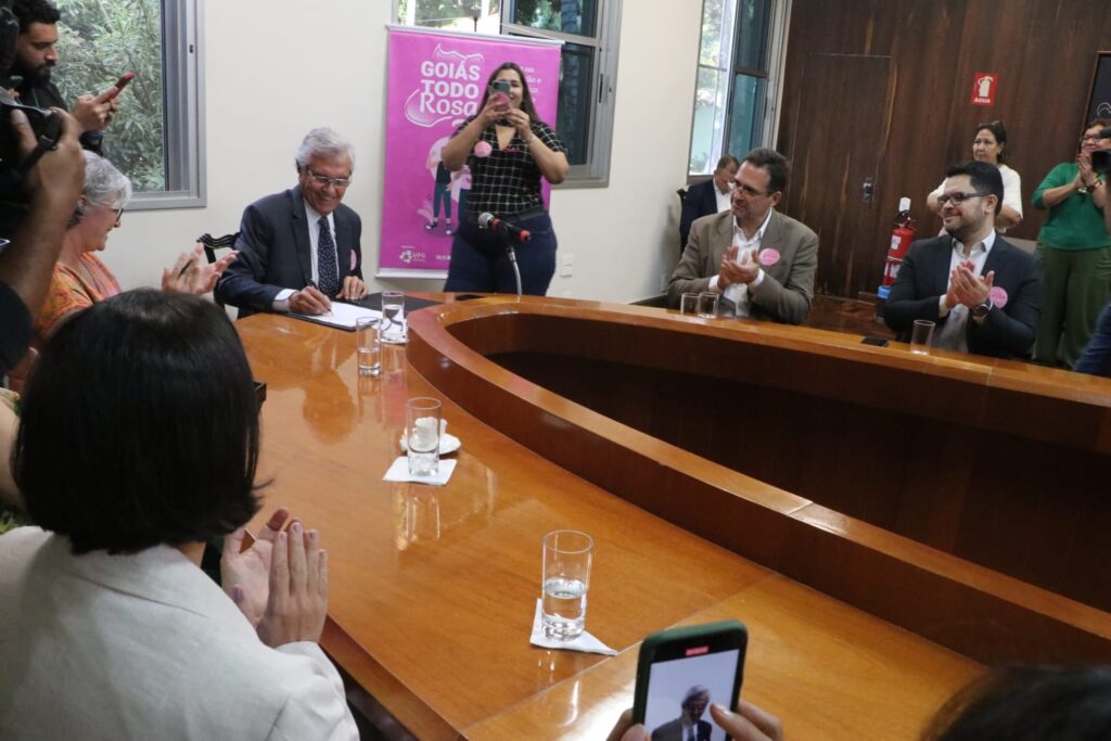 Governador Ronaldo Caiado em lançamento de parceria com a UFG para teste genético de detecção precoce de câncer de mama pelo SUS. Fotos: SES