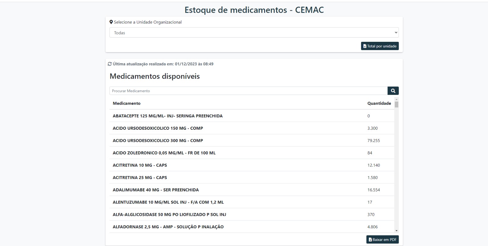 Estoques da Cemac JB e de outras sete unidades são disponibilizados na internet em tempo recorde; prazo máximo para estados cumprirem lei federal vai até fevereiro de 2024