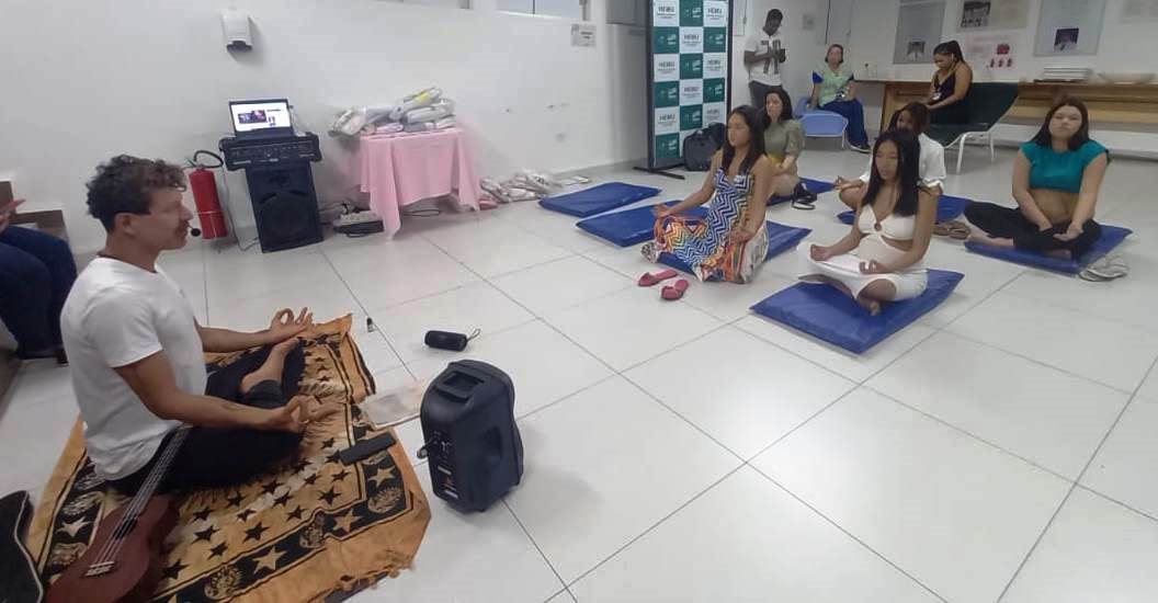 Feira da Gestante é encerrada com aula de yoga, conduzida pelo professor Breno Queiroz
