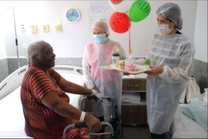 Terezinha Araújo dos Santos Costa celebra um novo recomeço com um café da manhã especial no momento de sua alta hospitalar