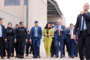 Na visita ao Complexo Prisional de Aparecida de Goiânia, Caiado destacou que Goiás faz história na segurança pública porque tem o controle das penitenciárias. “O primeiro ponto para combater o crime é o sistema penitenciário. Se ele não tiver 100% sob controle, o crime não poupa os cidadãos”, afirmou. De acordo com o gestor goiano, além de cumprir pena, os detentos podem desenvolver suas habilidades e aprender novas profissões. “Mostramos aos deputados a realidade daqui de Goiás ao transformar os presídios também em um local de recuperação”, ressaltou.
