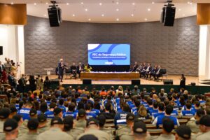 Na sequência, a comitiva participou de Seminário Público realizado na Assembleia Legislativa, em Goiânia, para debater o texto da PEC da Segurança Pública. Com a presença de deputados federais e estaduais, vereadores, secretários do Ministério da Justiça e representantes das forças de segurança, Caiado defendeu a tese de que a PEC será um grande divisor de águas para o país. “Ela vai definir realmente quem tem coragem de assumir o combate aos faccionados, que comandam grande parte do território brasileiro hoje”, afirmou.