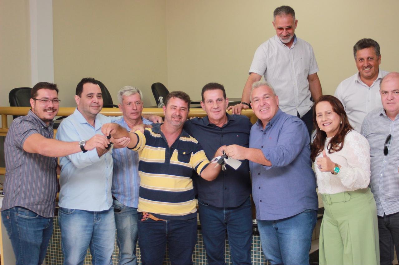 Israelândia – Em Israelândia, município voltado para a pecuária, Vanderlan entregou um caminhão compactador e coletor de lixo, um trator com implementos agrícolas e um ônibus escolar. O senador destinou, ainda, R$250 mil para obras de pavimentação na cidade.