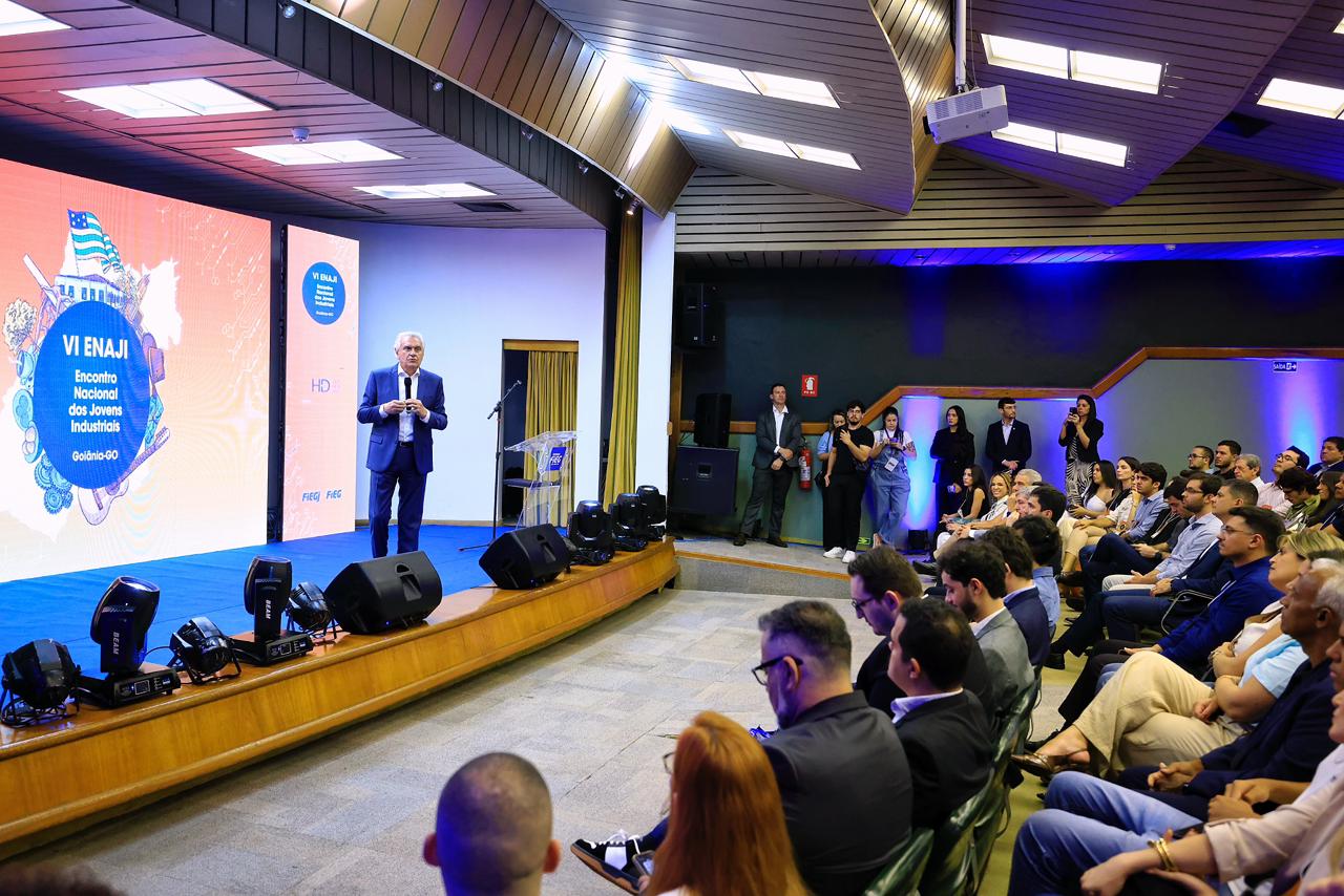 O governador Ronaldo Caiado destacou a atuação da gestão estadual para oferecer condições de competitividade e crescimento ao setor produtivo ao participar, nesta sexta-feira (14/11), do encerramento do VI Encontro Nacional dos Jovens Industriais (Enaji), na Federação das Indústrias do Estado de Goiás (Fieg), em Goiânia. O Enaji é considerado o principal encontro do setor jovem industrial no país.