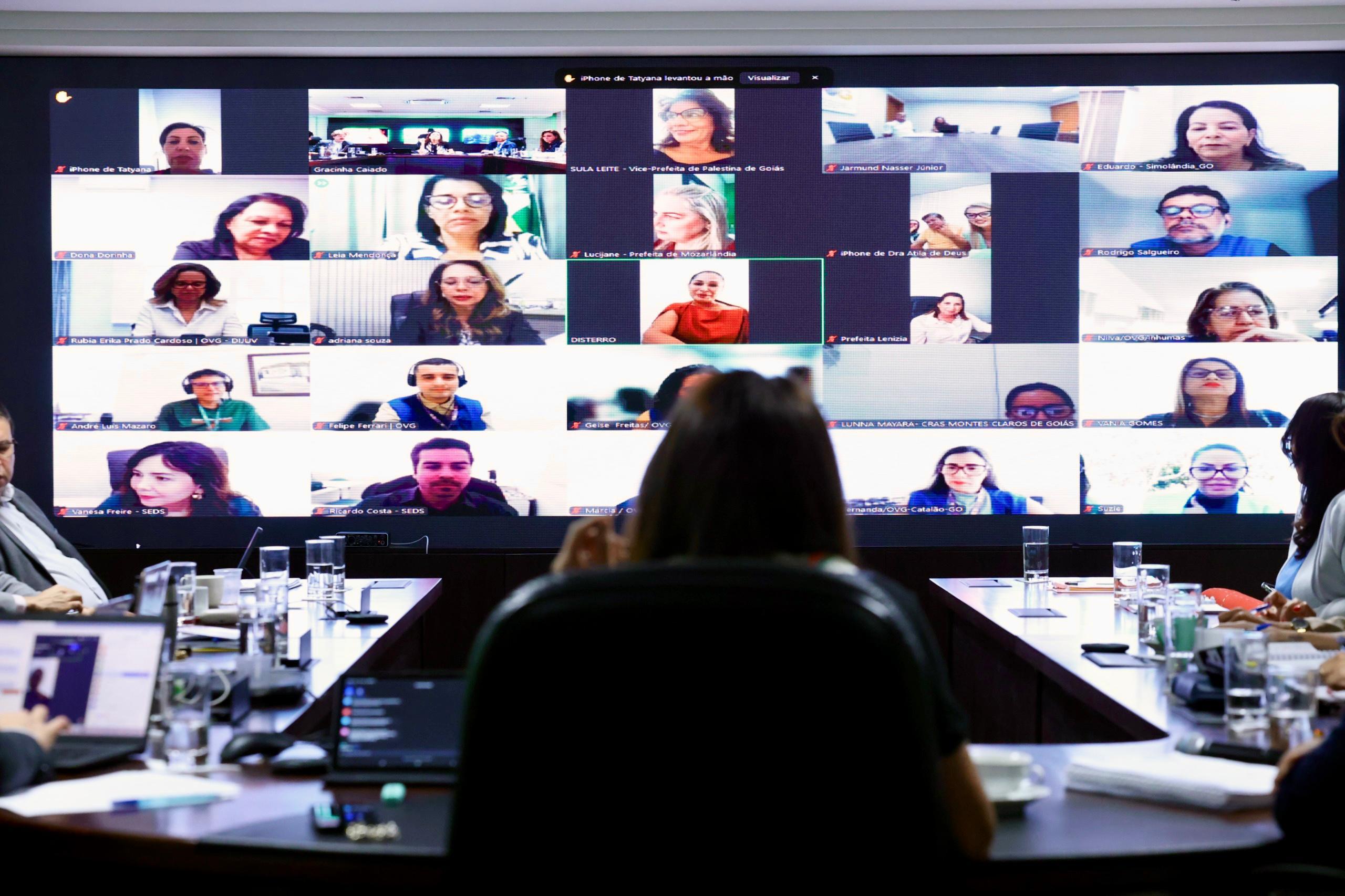 Primeira-dama Gracinha Caiado lidera reunião virtual com representantes dos 246 municípios goianos para orientar sobre o Equipa Social, programa que destina R$ 100 milhões para melhorias em Cras e Creas. Fotos: Cristiano Borges