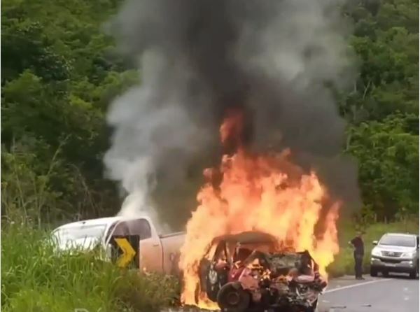 Veículo incendiado após acidente deixa uma pessoa morte. Foto: Divulgação/Reprodução Instagram