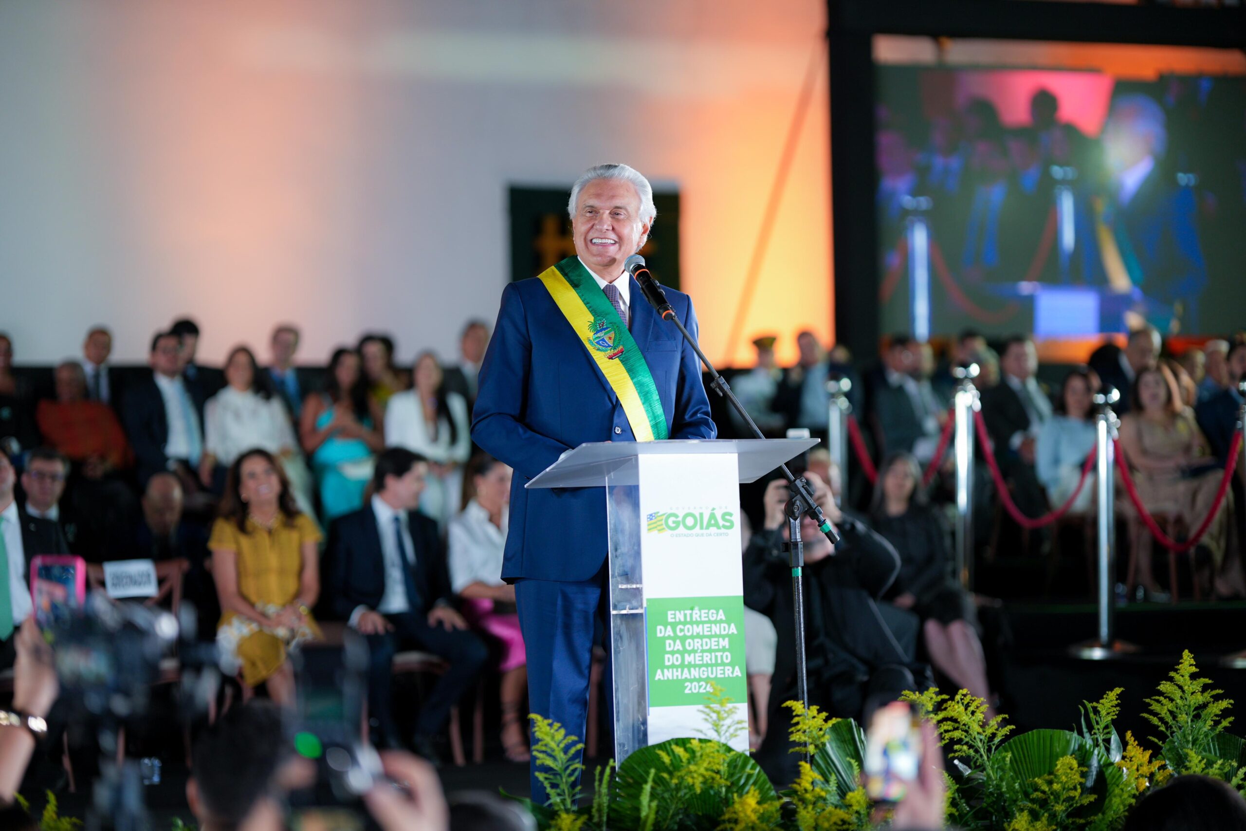 Ratinho Júnior elogiou o trabalho realizado pelo Governo de Goiás à frente da Segurança Pública e da Educação. “Fico feliz em ver o trabalho que o governador Ronaldo Caiado vem fazendo pelos goianos, atraindo a atenção do Brasil”, ressaltou. “Goiás é uma grande referência”, enalteceu ao agradecer a honraria recebida.