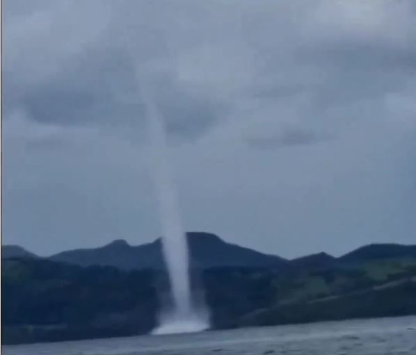 A recomendação é não se aproximar da tromba d’água, em razão do potencial destrutivo do fenômeno natural. O vento pode alcançar até 100 quilômetros por hora.